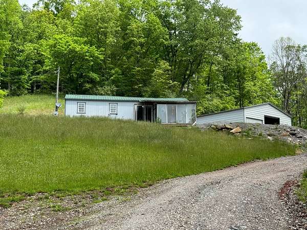 This home is sitting up on a hill, with a very private location, offering beautiful views of the surrounding hills. The property is located approximately 9 miles to Glenville, Glenville State University, schools, stores, churches, restaurants, medical facilities and other conveniences associated with small, country town living. The home has an open living / dining / kitchen area, a master bedroom with large closet and unfinished bath area, two rooms that could possibly be used as bedrooms, a full bath and a utility area. There is a detached two stall garage / shop with concrete floor and electric. The free gas rights, as per owner, will be conveyed to the buyer. There is a private well and septic, and a small pond beside of the home. The wooded area would allow for good hunting. This would make a great camp or getaway. If you're looking for privacy, peace and quiet, at an affordable price, then this one deserves a look. PRICE REDUCED TO $118,000.00.