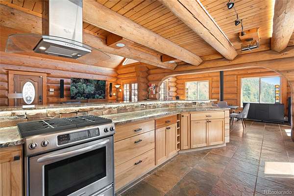 THE HOME THAT YOU HAVE BEEN WAITING FOR IS FINALLY HERE! AND IT COMES WITH A GUEST HOUSE! CURIOUS? STEP INSIDE! LOCATED IN THE HIGHLY SOUGHT AFTER CLEAR CREEK COUNTY WHICH IS MADE UP OF MORE THAN 75% PUBLIC LANDS OFFERING HORSEBACK RIDING, FISHING, BIKING, BACKCOUNTRY HIKES, ZIPLINING, WHITEWATER RAFTING, ADVENTURE PARKS, SKIING, BEAUTIFUL SCENIC DRIVES AND MUCH MORE! THIS MAJESTIC FOUR BEDROOM FOUR BATHROOM LOG HOME NESTLED ON 3 ACRES LEAVES NO DETAIL BEHIND. UPON ENTRY YOU WILL BE GREETED WITH COLOSSAL CEILINGS AND AN OPEN FLOOR PLAN. UPPER LEVEL BOASTS A SPACIOUS LOFT/OFFICE/REC SPACE AND GRAND PRIMARY BEDROOM RETREAT WITH A WOOD STOVE, EN-SUITE FULL BATH, WALK-IN CLOSET AND SCENIC BALCONY! MAIN LEVEL CONTAINS TWO BEDROOMS WITH A JACK AND JILL FULL BATH. LAUNDRY ROOM WITH WASHER & DRYER AND AMPLE STORAGE SPACE. PROFESSIONAL CHEF'S KITCHEN WITH STAINLESS STEEL APPLIANCES, CUSTOM CABINETS, TILE FLOORS, BRAZILIAN GRANITE COUNTERS AND OUTDOOR ACCESS. LARGE FORMAL DINING ROOM WITH A WOOD STOVE IS PERFECT FOR ENTERTAINING. OPEN AND BRIGHT LIVING ROOM WITH A STATE OF THE ART ENTERTAINMENT SYSTEM. CONVENIENTLY LOCATED POWDER ROOM. FENCED BACK YARD. OVERSIZED ATTACHED THREE CAR GARAGE WITH ROOM FOR A WORKBENCH, ATV, SNOWMOBILE AND EQUIPMENT. CIRCULAR DRIVEWAY MAKES RV PARKING A BREEZE. DRAIN AND ELECTRICAL HOOKUPS FOR RV AVAILABLE. NO HOA. PUBLIC SEWER. TOP OF THE LINE RUNTAL BRAND BASEBOARD SYSTEM. METAL ROOF. THE MAIN ATTRACTION IS THE ATTACHED ONE BEDROOM ONE BATH GUEST HOUSE WITH A SEPARATE EXTERIOR ENTRANCE THAT CAN BE USED AS AN AIRBNB OR LONG TERM RENTAL. MINUTES TO SHOPPING, DINING, HIKING, BIKING, DISTILLERIES, CASINOS AND MORE. EASY I-70 ASSESS. MINUTES TO INDIAN HOT SPRINGS, RED ROCKS AMPHITHEATER, LOVELAND SKI AREA AND WINTER PARK. 40 MINUTES TO DOWNTOWN DENVER. 1 HOUR TO DENVER INTERNATIONAL AIRPORT. THIS HOME IS NOT JUST A RETREAT BUT A TESTAMENT TO THOUGHTFUL DESIGN AND ENDURING QUALITY. WELCOME HOME!
