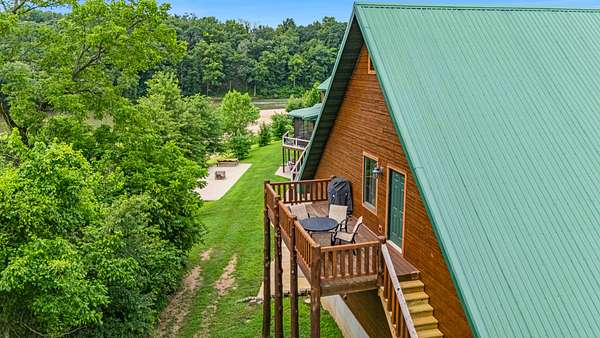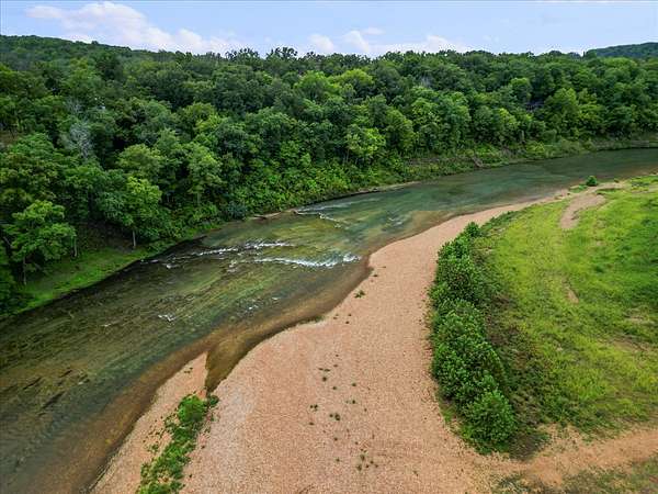 Set on 4.82 manicured acres spanning two lots, this property boasts unrivaled river frontage, panoramic views of the Ozark