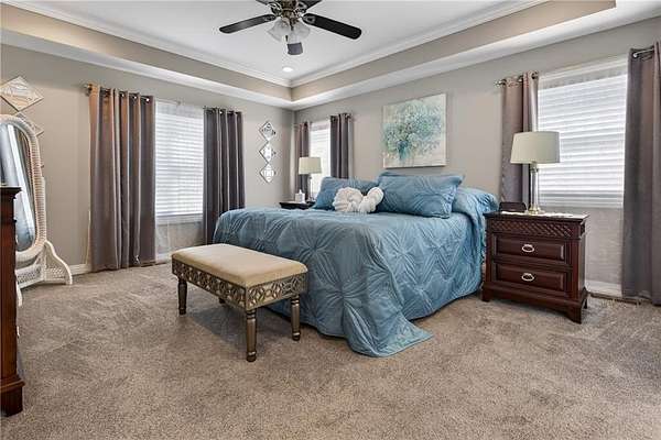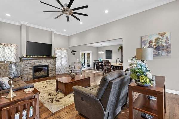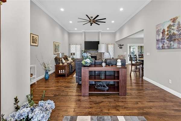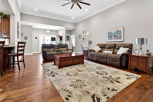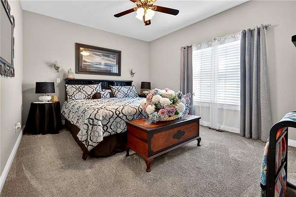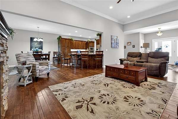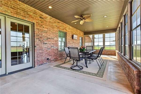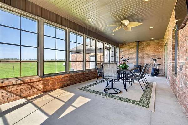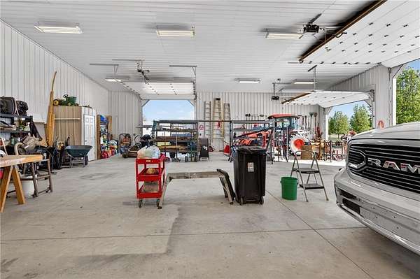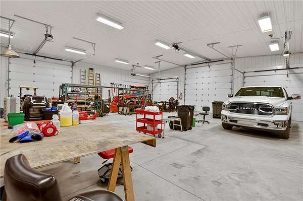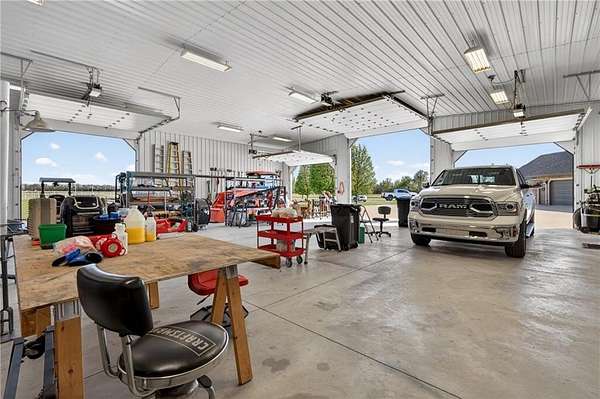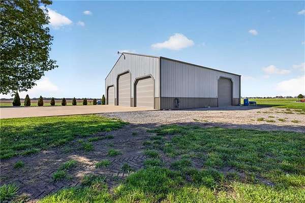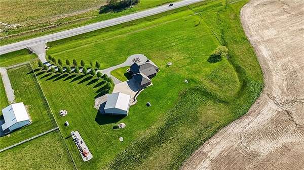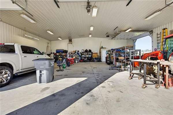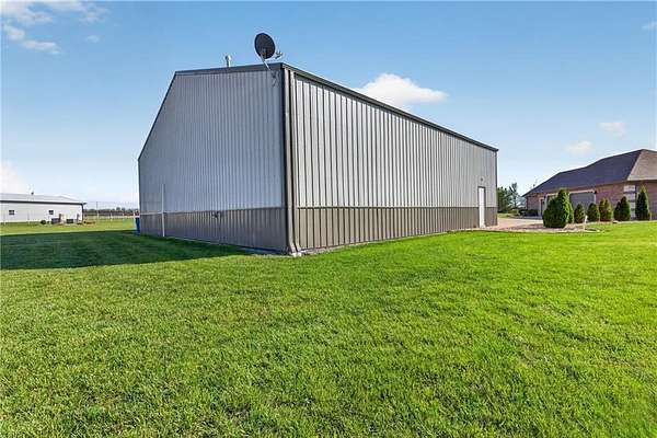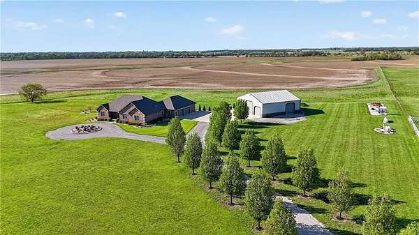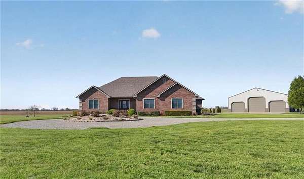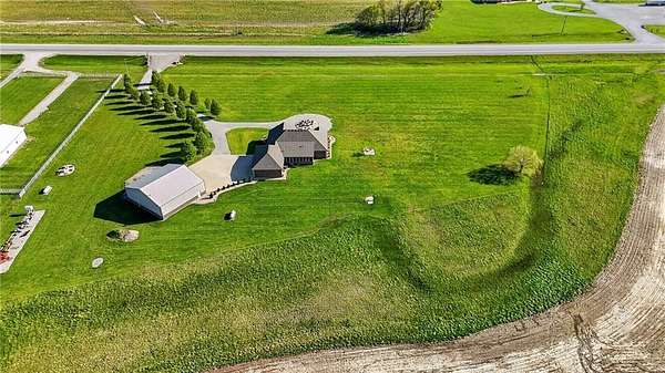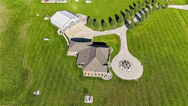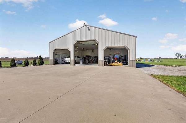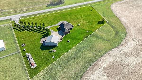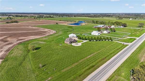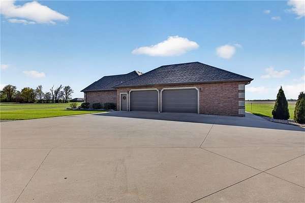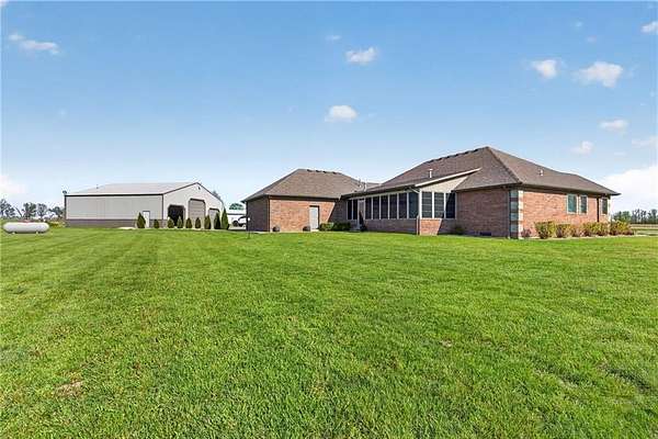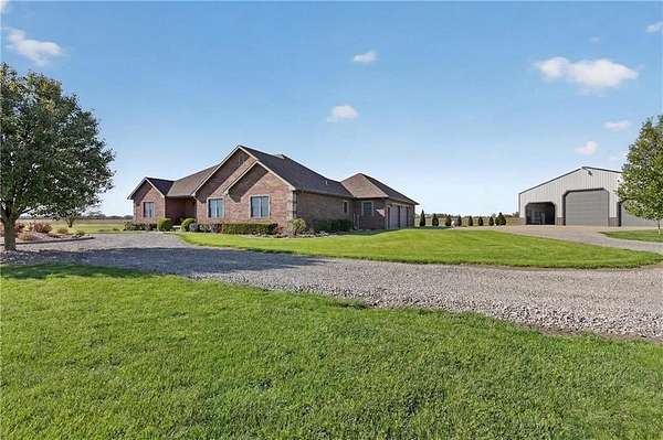 Welcome to this well-maintained, all-brick home custom-built in 2014, situated on approximately 4.3+/- acres in a peaceful rural setting along Highway 47. This 3-bedroom, 2-bath home offers a functional layout, quality finishes, and energy-efficient features throughout. The open-concept living area features 12-foot ceilings, creating a spacious feel, and flows into the eat-in kitchen equipped with stainless steel appliances and granite countertops. A hidden walk-in pantry provides additional storage and also serves as a storm shelter. An all-season room with stove heat offers additional living space and flexibility year-round. The home is equipped with an energy-efficient geothermal ground source heating and cooling system for consistent comfort. The primary suite includes tray ceilings, crown molding, and a large 10-by-14 walk-in closet. The en-suite bathroom features dual sinks, heated floors, a soaking tub, and a walk-in shower. Flooring throughout the home consists of a combination of carpet and tile, offering both comfort and durability. Additional features include two water heaters with a circulation pump, a security system, and a newer roof. The property offers excellent parking and workspace options with an oversized 2-car attached garage and a 50' x 50' shop. The shop includes four overhead doors, heating, and a half bath, making it ideal for storage, hobbies, or business use. This property combines efficient construction, practical amenities, and usable acreage in a convenient location with paved access.