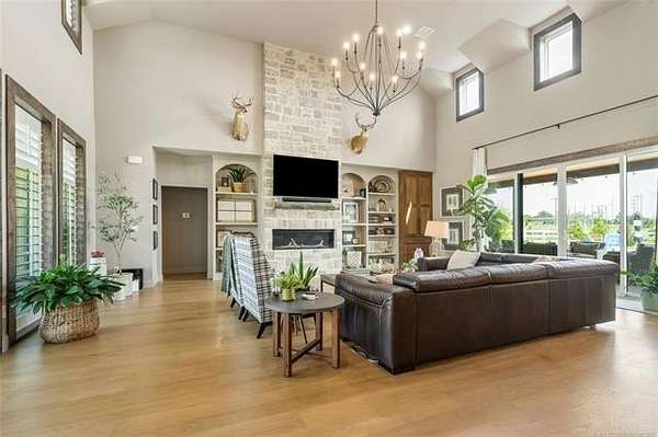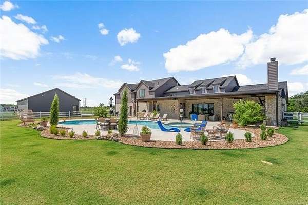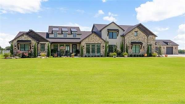 AN ESTATE BUILT FOR LIVING BIG | If you've been searching for luxury that doesn't limit your lifestyle, this gated 2024 custom estate delivers. Set on 2.47 acres, the property is anchored by an exceptional 1,800 SF (AP) spray-foam-insulated shop; a dream setup for car collectors, business owners, craftsmen, or anyone who needs space to build, store, and create. The outdoor living rivals a private retreat, featuring a pool, spa, outdoor kitchen with smoker and grill, and expansive entertaining areas made for unforgettable gatherings. Inside, the home blends sophistication with everyday comfort. Soaring ceilings, abundant natural light, and curated designer finishes frame a show-stopping chef's kitchen with a full prep kitchen, while the flexible floor plan offers both privacy and flow. The main level includes a luxurious primary suite, guest ensuite, wet bar, and seamless access to outdoor living. Upstairs features additional bedrooms, a spacious game room, and room to grow. With spray foam insulation throughout, tankless water heaters, a 4-car garage long enough to fit your large trucks, all within Bixby Public Schools, this estate offers a rare opportunity to enjoy country-style freedom without sacrificing modern luxury or convenience.