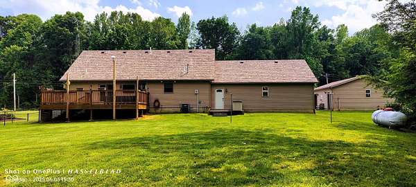 Get ready to be welcomed to your new home and for your added comfort a home warranty has been added! Nestled on three acres in the serene countryside, this charming house offers a perfect blend of comfort and elegance. With three spacious bedrooms, two full baths, and a half bath, there's plenty of room for everyone. The living room, family room, and kitchen provide ample space for gatherings, while the office area at the top of the stairs offers a quiet retreat for work or study. Your family room sliding doors lead to the expansive rear deck, wooded back yard, and side area with black link fenced area for your furry friends. The roof, only two years old, ensures peace of mind, and the private well and septic system adds to the home's self-sufficiency. You'll love the raised beds in the side yard, perfect currently with strawberries, and the established landscaping that adds to the home's curb appeal. Inside, the home features vinyl plank flooring throughout, with ceramic tiles in the foyer. The spacious garage, measuring 32 by 26 feet, includes a concrete floor, a 16-foot garage door, The garage is also equipped with a stereo system, and insulated walls. In addition, you have a detached 30 by 24 shop with insulated walls, concrete floors, 100-amp electric service and a 30 amp plug on the shop for your RV, Heating is provided by LP gas, and you'll own your LP tank, giving you the flexibility to fill it whenever and with whomever you choose. The property includes a charming little creek, a chicken coop with chicken boxes and planks, and a shed out back for your lawn mower or side-by-side. This beautiful home will be ready to welcome you soon. Be ready to come and experience the tranquility and charm it has to offer. SHOWINGS BY APPOINTMENT ONLY
