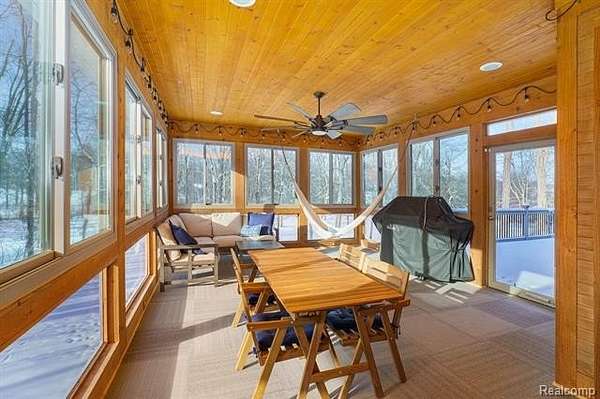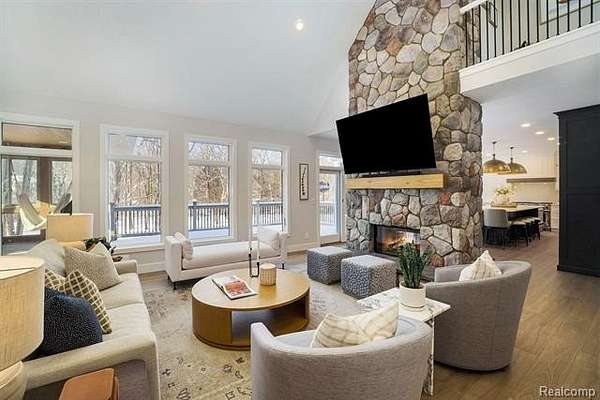 Set on 10 scenic acres with a private pond and wooded trails, this fully custom 2024 remodel is the dream lifestyle! Offering the perfect blend of modern luxury and stunning design, every detail reflects craftsmanship, functionality and high-end finishes. Step inside to discover an incredible chef's kitchen with custom Young cabinets and a statement 10-person island. The main level showcases hickory wide-plank flooring, a fireplace with matching reclaimed barn beam mantels and a cozy 4 seasons room with removable windows and gas heater. An elegant primary suite features beautiful sunlight, bath with heated floors and his-and-her closets with soft-close pocket doors. Throughout the home, custom built-ins maximize storage and style from the bathrooms to the laundry room, every space has been elevated with designer detail. Finishing off the main floor is a spacious office and gorgeous full bath. Upstairs you will find 3 additional spacious bedrooms with large closets and full bath. The finished walkout basement is perfect for additional entertainment space (currently used as a pilates studio). The value doesn't stop at the main house- The property includes a 64' x 36' Amish-built mega barn that is fully heated and cooled. Inside you'll find a finished mancave/bonus room complete with a kitchenette and 2-piece bathroom. This barn is more than storage, it's a versatile space that can serve as an entertainment hub, workshop or retreat with craftsmanship that mirrors the quality of the home itself. Enjoy the benefits of 10 acres without giving up convenience. No dirt roads, no funky internet and located close to Downtown Dexter and an easy commute to Ann Arbor. View the feature and renovation list to see the incredible upgrades this property has to offer! Gas grill & TV's are all excluded from sale.