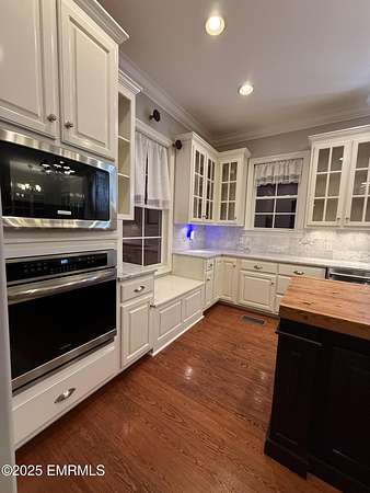 Marvelous home featuring formal dining room, keeping room, great room and has an amazing kitchen and pantry, with laundry and nice study; and tons of storage. Primary bedroom features its own En-suite. The upstairs has a common area den with three surrounding bedrooms and dual-vanity baths. The original owners left the Historical Replication design which shows the incredible framing of this home and those plans will convey. The Southern brick and tile front porch and its brick stair entrance; the covered back porch is the length of the home. Above the workshop, garage area, overlooks the private back yard. The bedrooms and kitchen have inside storage window-boxes. There are beautiful transoms viewed outside the home. Recently the home has been professionally cleaned and painted. WL Sch