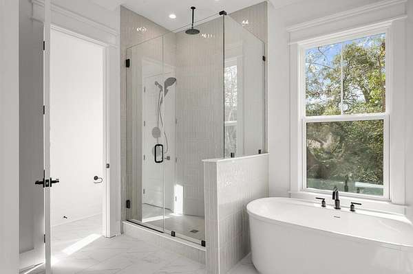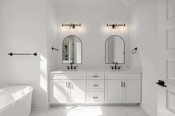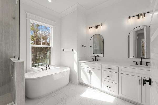 Additional main floor highlights include low maintenance LVP floors throughout the main level, a butler's pantry connecting to a front office or flex space, and a luxurious primary suite with a walk-in closet, dual vanity, a freestanding soaking tub, and a walk-in tile shower with a frameless glass shower door!