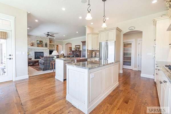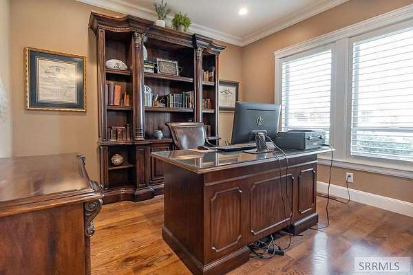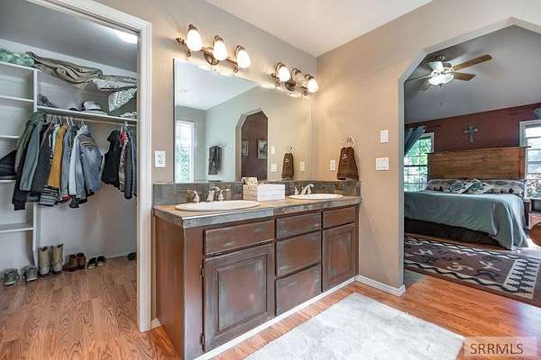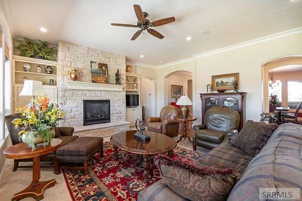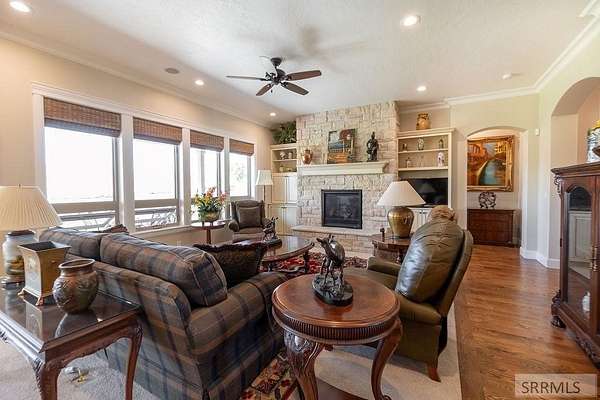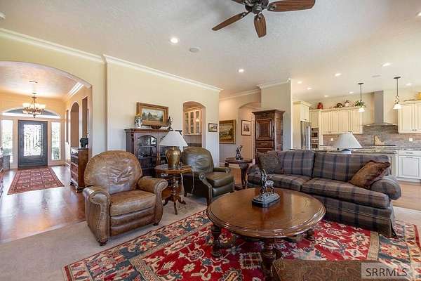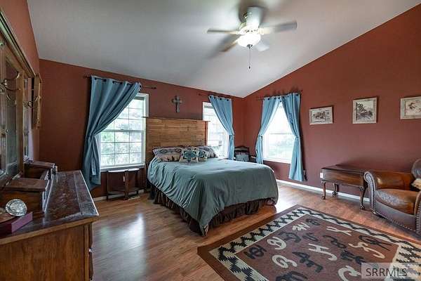 This premier 83-acre Gem County equestrian estate boasts THREE complete residences, professional horse facilities, and direct back-gate access to 40,000+ acres of BLM land offering unlimited riding and recreation. The stunning main residence features 4 bedrooms and 3.5 baths with premium finishes throughout, propane fireplace, battery-powered shades, theater room,,3-car garage and covered patio.3 bedrooms include full ensuite bathrooms! A 2,129 sq ft second home provides 3 bedrooms and 3 baths with dual solar-heated water system and mature trees with water feature. The 2,940 sq ft shop houses a 940 sq ft apartment with bedroom, bath, full kitchen, laundry, pellet stove, and optional in-floor heat. Professional equestrian facilities include a 16-stall barn with bathroom and tack room, covered round pen, sprinkler-equipped outdoor arena, and roping chute. Multiple pastures with welded pipe fencing and heated waters support operations, plus covered hay storage and grain bin. Two Zimmatic pivots and 10 big gun sprinklers with 75 HP pump handle irrigation for hay production and grazing, while hand lines support an optional rotational crop on the West end of the compound. Panoramic Boise Mountain and Owyhee views include Bogus Basin's night skiing lights. Minutes to I-84.