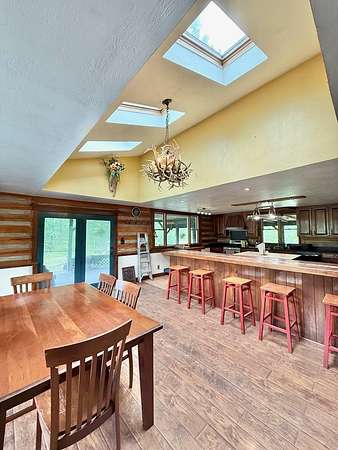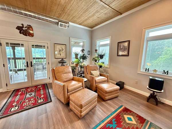 "Almost heaven WV" country living on this beautiful 100+ acre farm with two move-in ready homes, both with metal roofs. The main home, built in 2020, features solar panels and a whole-home generator. The second home is a rustic log cabin with a wraparound porch overlooking a fully stocked pond with crappie, bass, and bluegill. Rolling, scenic land offers apple, pear, and plum trees, blueberries, grapes, walnuts, and a 1-acre ginseng plot. Excellent hunting for whitetail deer, turkey, rabbit, and fox. A working farm with horses and chickens, two barns, an outbuilding, pastures, wooded areas, garden space, and two automatic waterers--perfect for homesteading, recreation, or retreat living.