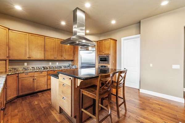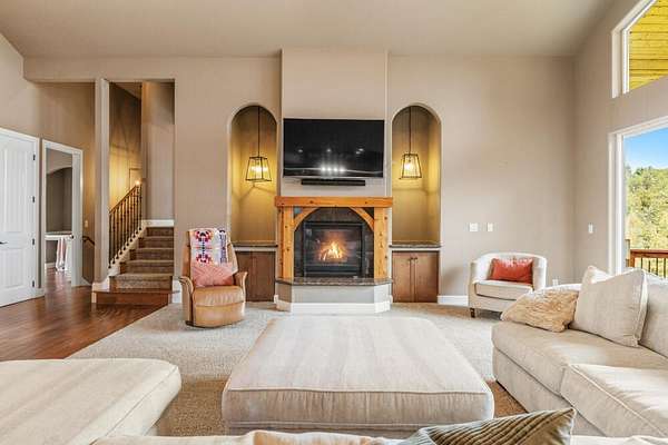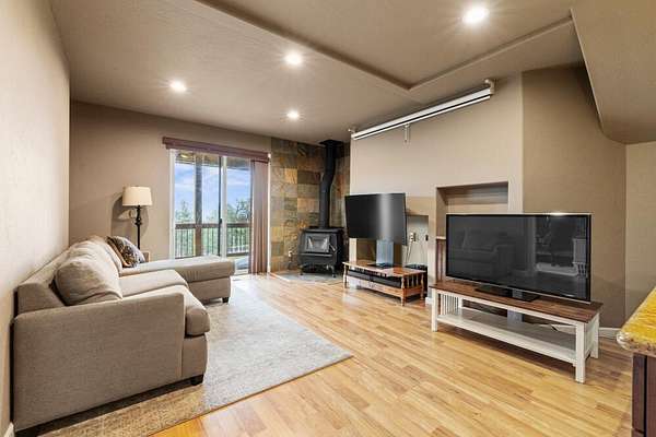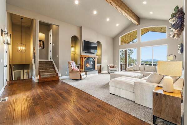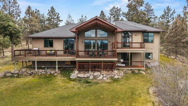 Immaculate 4 bedroom 3 bathroom luxury home nestled in the trees with acreage. Perfect for indoor & outdoor entertaining, featuring 5 acres of land, a long driveway with turnaround, 3 car garage, vaulted ceiling in living room, upgraded finishes, manicured grass, private gated entrance, as well as 4 separate decks all boasting serene or distant views, this property leaves little to be desired! This kitchen has all upgraded appliances, beautiful granite slab counters, prep sink, pantry, and is an open ranch style concept. Bathrooms feature upgraded tile flooring and counters. The primary bathroom has dual vanity sinks, a tiled walk in shower, jetted tub with a view, and access to a private deck on the front of the home. Main level deck off of the living room could be described as extended living space as it is covered with craftsman style roof overhang. Separate living area/bonus room downstairs, along with 2 bedrooms, a full bath and access to another deck. You have got to see this on