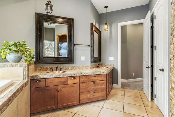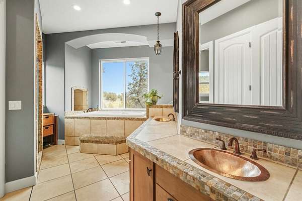 - Built-In Features, Ceiling Fan(s), Double Vanity, Enclosed Toilet(s), Granite Counters, Kitchen Island, Open Floorplan, Pantry, Shower/Tub Combo, Tile Shower, Vaulted Ceiling(s), Walk-In Closet(s)