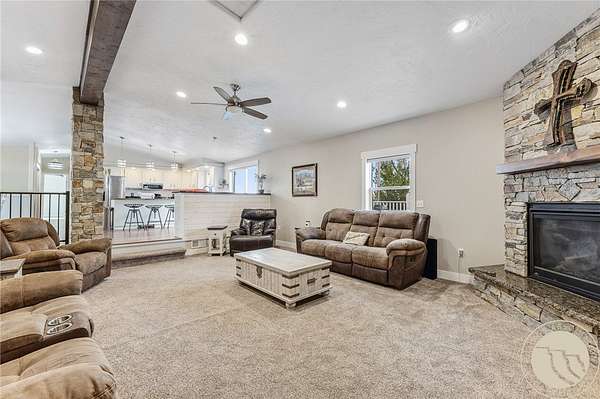 Rural freedoms meet modern comfort and convenience in this farm style ranch property. No restrictions, natural springs, a variety of outbuildings, and mature landscaping leave plenty of options and potential of use for the outside from business to 4-H or homesteading- the possibilities are endless. Inside the house you will find an open yet cozy floor plan, large sunken living area, unique granite counters, custom stonework, a massive pantry complete with a standing freezer, a large mudroom/office off the garage, main floor laundry, and an expansive primary suite overlooking the creek valley. Then downstairs you can enjoy the large workout/jits room that could also be converted into another bedroom or other flexible potential, a private office, family room, 4th bedroom, and walkout patio.