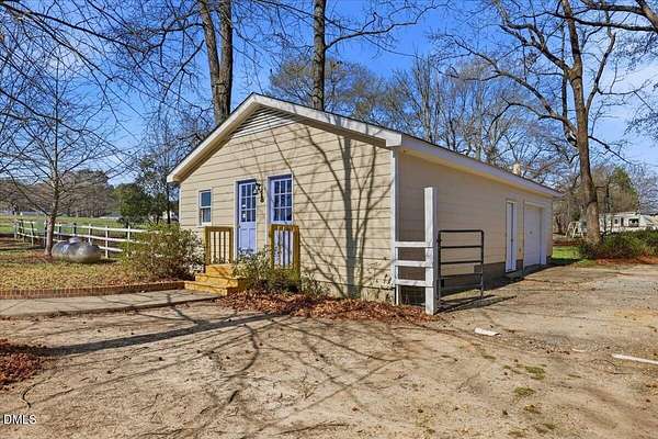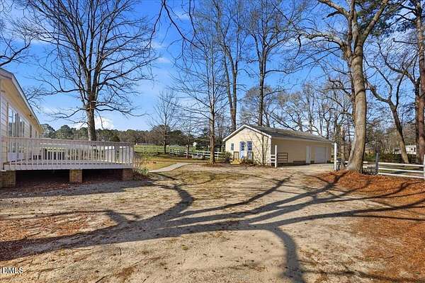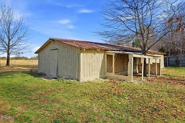 Situated on 12.9 acres along the Johnston and Harnett County line, this unique property offers a rare combination of space, natural beauty, and opportunity. Built in 1946, the home features 3 bedrooms, 2 bathrooms, and approximately 2,453 square feet. A spacious 23x34 living room with vaulted ceilings creates an impressive central gathering space with plenty of room for entertaining or relaxing. The structure of this home provides a solid starting point for renovation. Step outside and enjoy the peaceful setting from the back deck or the covered patio just off the kitchen, which is an ideal spot to sit, unwind, and take in the surrounding nature. The 12.9-acre tract offers a diverse landscape with partially cleared land, wooded areas for privacy, and a stream that runs along the county line. The property includes road frontage and has historically supported horses, livestock, and farming, with suitable areas for gardens or agricultural use. Several outbuildings provide flexibility for storage, equipment, or hobby space, including a detached garage with office space and ample storage, as well as a detached barn building. The property is served by well water and septic. Whether you're looking for acreage, room for outdoor projects, or a property with potential to update and make your own, this unique offering provides the space and versatility that are increasingly hard to find.