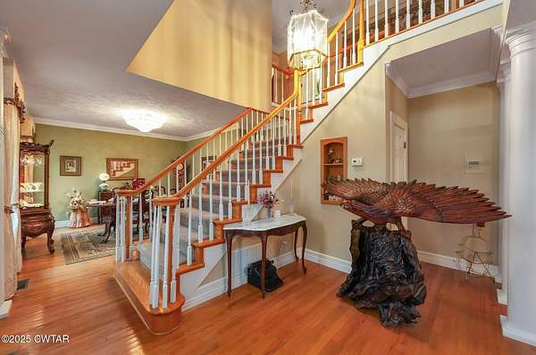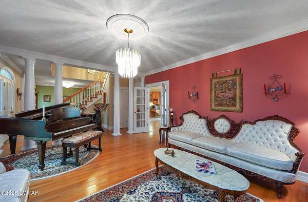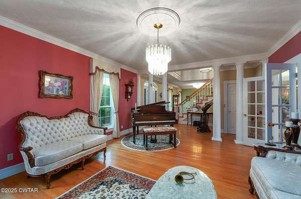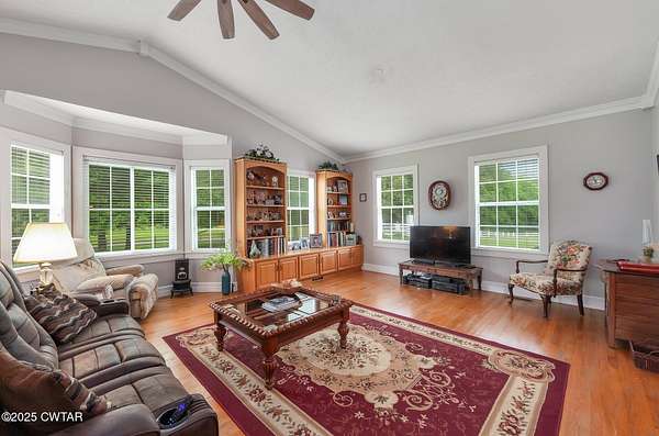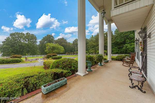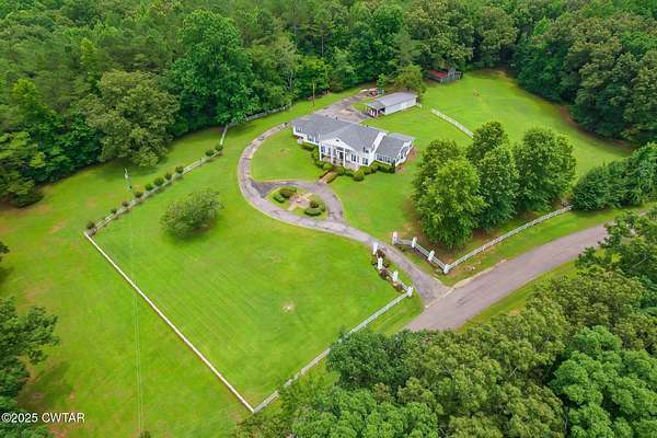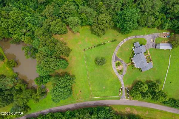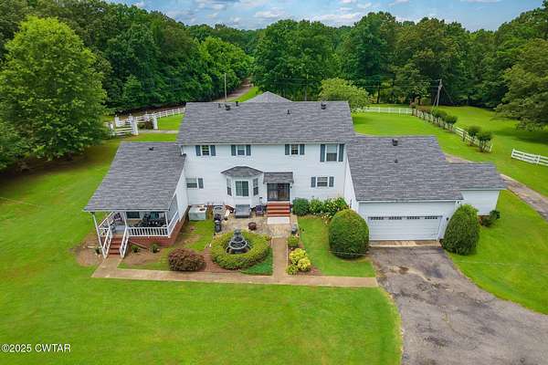 Maintenance free exterior and New Lifetime Warranty Roof! Discover a one-of-a-kind retreat nestled with stocked pond on 11 picturesque acres in Bolivar, TN. This extraordinary 4,100 HSF estate blends craftsmanship, comfort, and character with your choice of two spacious primary suites - one upstairs and one downstairs, four fully renovated baths-including Italian marble finishes in the primary bath, two clawfoot tubs, and a premium walk-in shower. Two additional guest bedrooms are located on the upper level as well as a balcony. From the handmade custom cabinetry and built-ins to the antique light fixtures and heavy moldings, every detail showcases timeless elegance. The kitchen boasts granite countertops, custom cabinetry and a wet bar and flows seamlessly into the great room. The formal living and dining room is perfect for hosting guests on special occasions. 2 bonus spaces provide more options for guests, office space or a play room. Two staircases provide extra convenience and accessibility. Enjoy peace of mind with a security/camera system, intercom with stereo, and a 1 year old lifetime manufacturers warranty slate-look shingle roof. This well-insulated home and oversized garage include 3 HVAC systems and private well. Step outside to your own private world-featuring a 3-stall barn with hay loft, a shop with wood-burning stove, and a stocked pond with catfish, bass, and crappie-complete with a zip line over the water. A true sanctuary where nature and nostalgia meet-perfect for those seeking a unique, self-contained lifestyle. Maintenance Free Exterior and New Lifetime Warranty Roof! Home includes 2 separate lots with separate deeds. The one on the other side of the lake is 7.5 acres. Great for view of the lake, has over 70' differences in elevation. The 2.5 area with rolling hills, is perfect for 4-wheel riding, walking trails or hunting. Roof- 1 year old - Lifetime Warranty! Water heater - 2023 New well 2024 See associated docs for a more complete list of features and floor plan.
