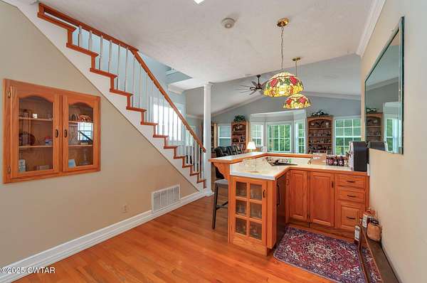 - Bookcases, Breakfast Bar, Ceiling Fan(s), Ceramic Tile Shower, Commode Room, Crown Molding, Double Vanity, Eat-In Kitchen, Entrance Foyer, Granite Counters, High Ceilings, Kitchen Island, Pantry, Walk-In Closet(s), Wet Bar