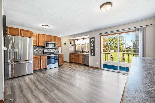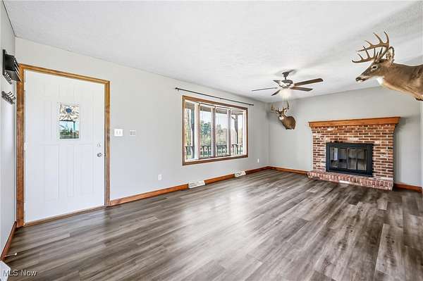 Tucked away on a quiet dead-end road, this charming 3-bedroom, 1-bath ranch is all about peace, privacy, and plenty of outdoor space! Picture morning coffee, BBQ's and evening sunsets on the spacious deck overlooking your sprawling backyard -with over 1.5 acres of open, green space to roam, garden, or play. Inside, you'll find a bright and welcoming layout with comfortable living areas ready for your personal touch. The great room boasts a lovely brick wood burning fireplace and connects to the kitchen and dining area for a great open flow. Whether you're dreaming of a little country charm, space for hobbies, or simply a private place to call home, this hidden gem checks all the boxes! The following updates have been done for you....Roof-2019, Hot Water Tank-2021, Well Water Softner System-2021A/C-2025, Furnace rebuilt-2025, Bathroom 2021, Kitchen Counters and sink-2023 and appliances-2023. Just pack your boxes and move in!