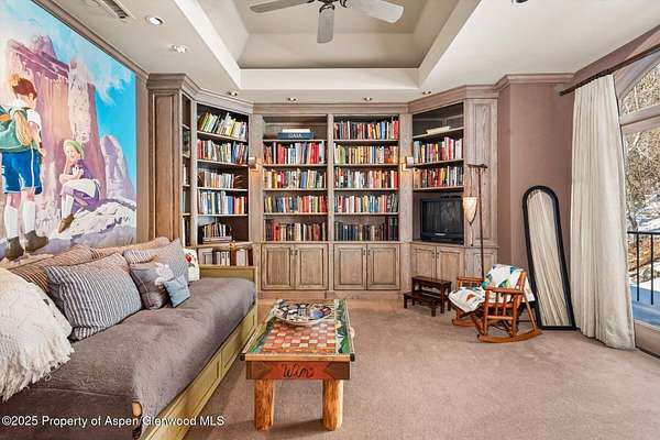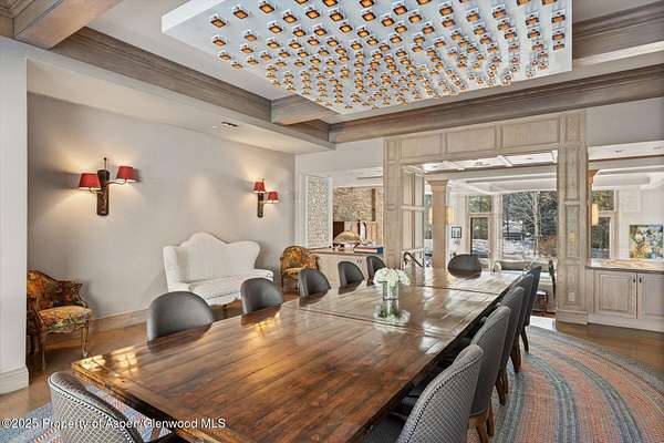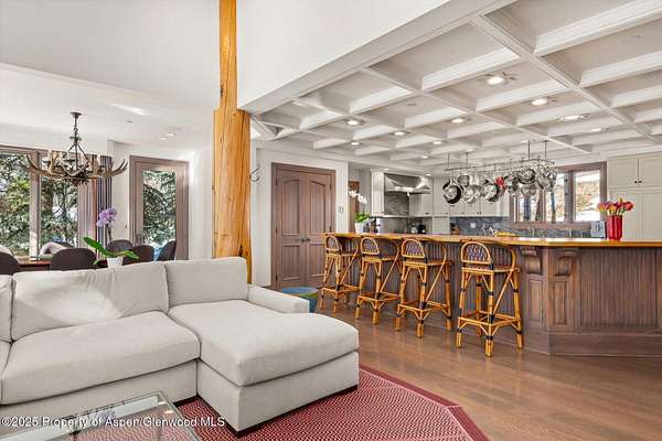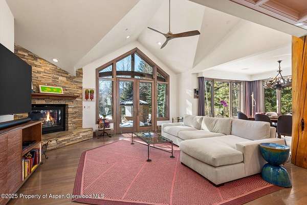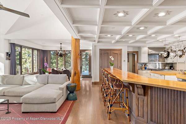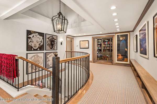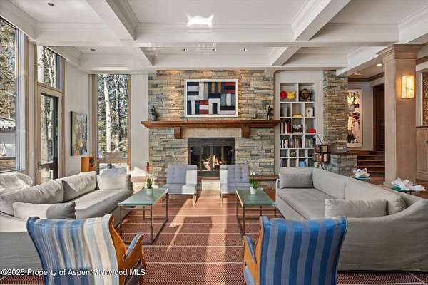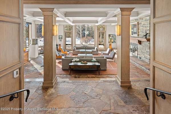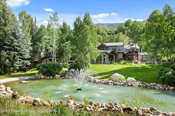 Located on Aspen's prestigious Willoughby Way, this Red Mountain estate offers unobstructed views of Aspen Mountain, Highlands, and the Elk Range. Designed by Charles Cunniffe Architects, the home blends Aspen's ski heritage with modern living, featuring expansive indoor-outdoor spaces, five en suite bedrooms, and a private apartment above the three-car garage. A large pond with fountains, manicured lawns, and a babbling brook enhance the secluded grounds-all just minutes from Aspen's world-class dining, shopping, and recreation. 645 Willoughby Way is truly one of a kind.