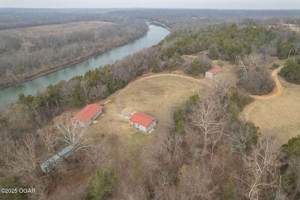 Escape to your own Spring River retreat on 33.87 picturesque acres just outside Miami, OK. Completed in 2019, this quaint 2 bed 2 bath barndominiumstyle home pairs modern comfort with country charm and includes an deattached shop for all your tools, toys, and hobbies. Step inside to an inviting open-concept layout. Expansive windows and outdoor living areas let you take in peaceful views of the surrounding pasture, woods, and riverfrontage. Outdoors, the land is a hunter's and nature lover's dream, offering a mix of open ground and timber that regularly attracts deer and turkey. With the Spring River along the property, you can enjoy fishing, kayaking, and quiet evenings by the water in seclusion. 30 minutes to Joplin
