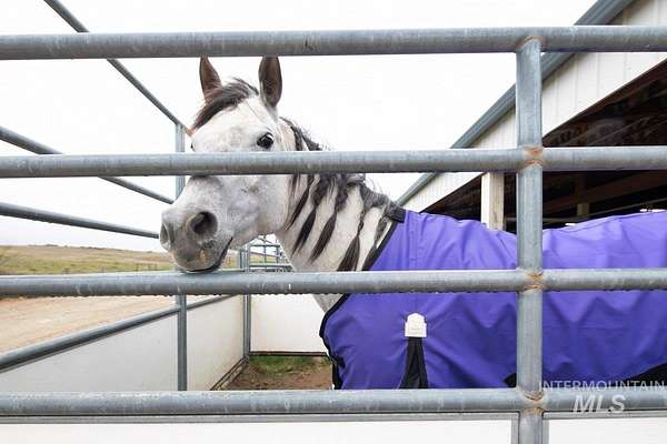 Rare opportunity to own an exceptional equestrian estate on 83 acres bordering BLM land, offering breathtaking mountain views & endless possibilities. This unique property features two homes plus an ADU with an attached shop, creating outstanding opportunities for multi-generational living, income potential, or a private retreat. The main residence (3,237 sq ft, 3 bed 3 bath) is a thoughtfully designed single-level home with an open-concept layout ideal for entertaining. Each bedroom features its own en-suite bathroom, & additional spaces include a dedicated office, theater room, & bonus room for flexible living. Equestrian enthusiasts will appreciate the fully operational horse facilities, including irrigated pastures, productive farmland, three fenced pastures, outdoor arena, round pen, hay barn, silo, and a 16-stall barn complete with tack room & bathroom. An irrigation well with valuable water rights ensures the land can be efficiently maintained year-round. The ADU (904 sq ft, 1 bed, 1 bath) is currently rented for $3,400 per month, providing immediate supplemental income. With expansive acreage, income potential, & premier equestrian amenities, this property offers a rare blend of lifestyle, investment, & opportunity. The Second home is (2,129 sq ft, 3 bed, 2 bath).