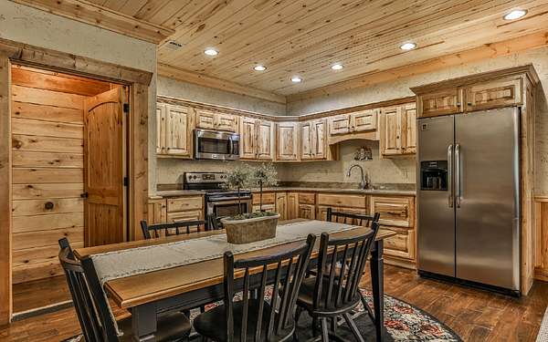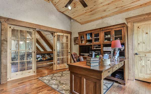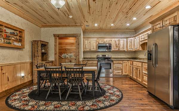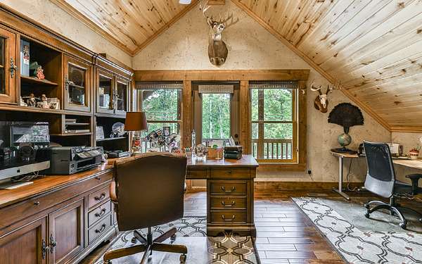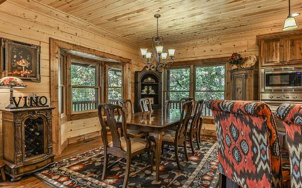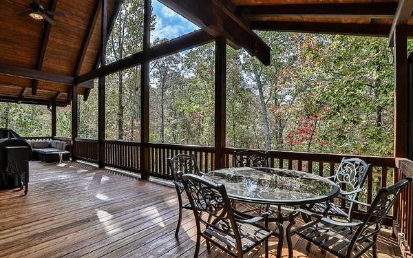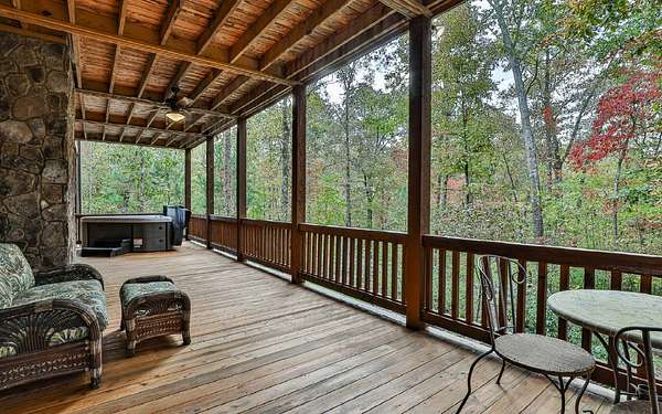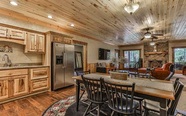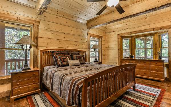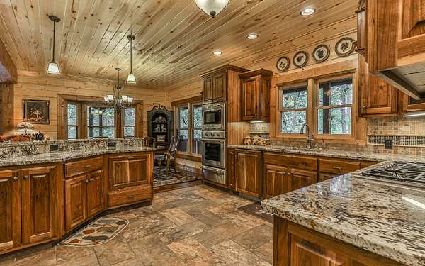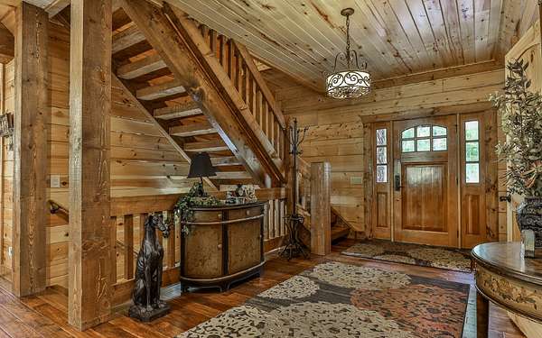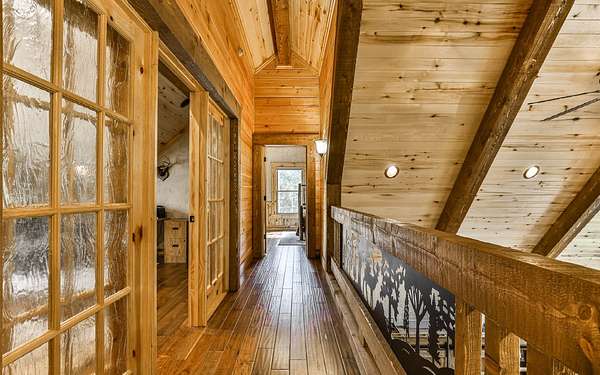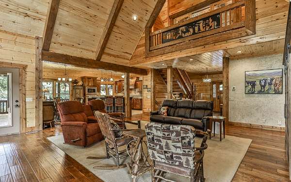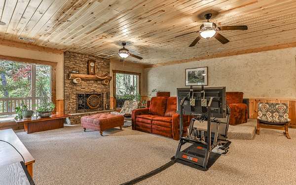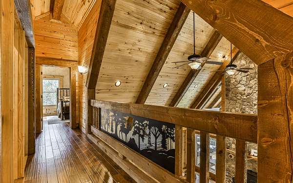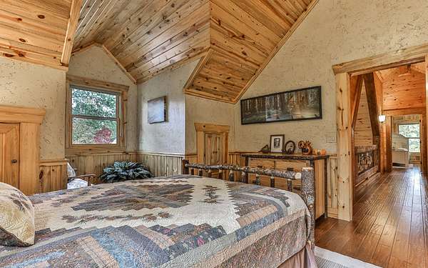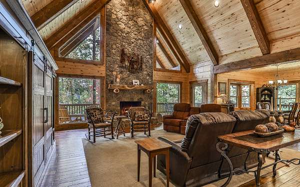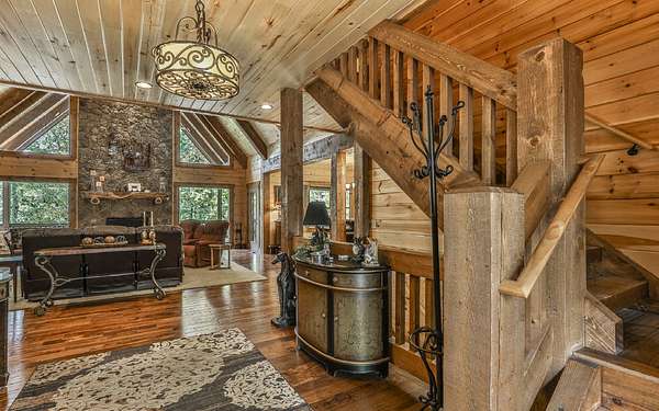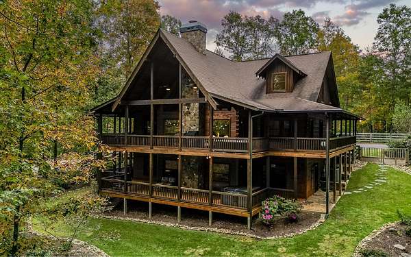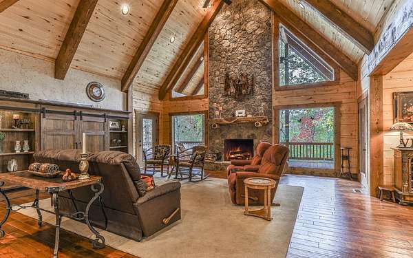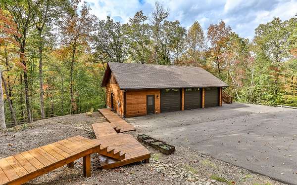 Welcome to your private mountain sanctuary on nearly 30 AC of pristine N GA land, nestled between Ellijay & Jasper. At the heart of this extraordinary estate is a custom-built Satterwhite log home, thoughtfully designed to blend timeless rustic character w/elevated modern living. The great room impresses w/a floor-to-ceiling stone fireplace, flanked by large windows that flood the space with natural light & frame the tranquil views. The spacious kitchen is built for culinary adventures, featuring granite countertops, gas cooktop, wall oven, commercial-size refrigerator, wine fridge & walk-in pantry. A mudroom with built-in counter space & sink adds practicality & convenience. The main-level master suite is a spacious true retreat, complete with live edge wood beams & a luxurious en-suite bath w/soaking tub, walk-in tiled shower, & dual vanities w/additional cabinetry. The upstairs hallways has a custom metal mountain scene railing & 2 large bedrooms anchoring each end of the hallway, both w/private en-suite baths & plenty of room to stretch out. Between them sits a stunning bedroom or office space, enclosed by double glass-paned French doors & opening to its own private balcony--a perfect spot for creative inspiration. The terrace level is an entertainer's dream & ideal in-law or extended-family space, w/full kitchen, theater-style great room w/fireplace, private bedroom & bath, bonus room/gym, laundry & ample storage. Outdoor living is equally impressive with wrap-around decks on 2 levels, hot tub, & beautifully landscaped yard. A detached 2+ car garage is conveniently located near the home, while the ultimate detached 3+ car garage/workshop includes RaceDeck flooring, private bathroom w/sauna & second-level storage--ideal for car enthusiasts, hobbyists, or gear storage. Accessed via your private drive over the flowing Town Creek, this estate is a rare opportunity to own a truly special home where luxury, nature & craftsmanship come together in perfect harmony.