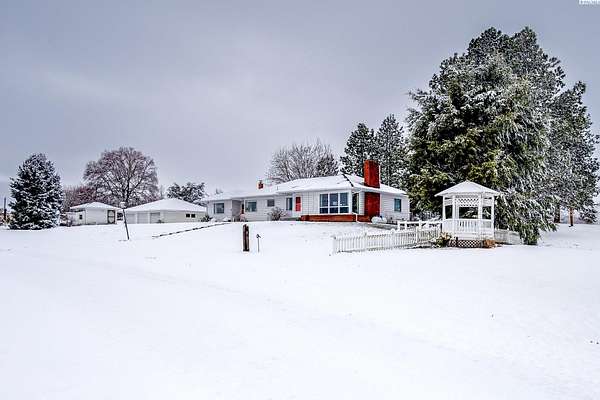 MLS# 290683 Step into this spacious home nestled among the rolling hills of the Palouse.The stunning main level has beautiful built-ins and an open floor plan that feels rock solid. At the heart of the home, the light-filled kitchen features charming custom tile work, lots of natural light, ample counterspace and storage, and a farmhouse sink. The living room is enhanced by newer windows that frame the gas fireplace, creating a warm and inviting atmosphere. Several newly installed mini-splits provide efficient heating and cooling year-round. The main level offers four generously sized bedrooms and a full bathroom, providing plenty of space. Downstairs, the walk-out basement expands your options with endless storage, an additional bedroom, and a partial bathroom complete with a walk-in shower. A new exterior door adds convenience, and the lower level offers a comfortable, versatile space ready to fit your needs. Outside, you'll find a detached three-car garage, a mower shed, and a pump house/chicken coop. The beautifully landscaped yard is both easy to maintain and a joy to relax in. Don't miss the matching gazebo for even more outdoor enjoyment. This Palouse property offers space, character, and functionality -- all in a picturesque setting.