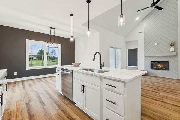 Gorgeous new construction! Walk into the open, inviting living room that boasts vaulted ceilings & a shiplap fireplace. Laundry doubles as a mudroom w/ a custom bench & hooks for coats or backpacks, built-in shelving & a sink. Primary bedroom features plenty of closet space w/ custom built-in shelving, and a bathroom featuring double vanities and a relaxing bathtub. Follow the wall-lit stairwell to flex room which was shown as a 4th bedroom on the floorpan. Large bonus room upstairs with a full bath is a great place for the family to wind down. The nook upstairs is the perfect spot for productivity or relaxation! Outside you'll love the concrete sidewalks leading to the front porch & covered back porch, while exterior uplighting illuminates the home. 2 car garage w/ add'l parking pad allows for plenty of parking! Enjoy the beautiful sunsets in this beautiful rural area!