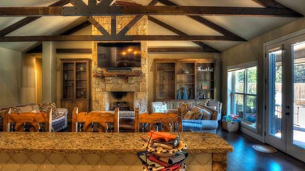 Luxury Living on the Frio This stunning property in the Texas Hill Country is sure to impress and check all the boxes! Spanning 1.5 acres, it features 112' of Frio River frontage. Built in 2016, the main home features 3 bedrooms and 2 bathrooms and offers an estimated 3,000 square feet of living space. The primary bedroom includes an ensuite bathroom with a soaking tub, dual vanities, and an oversized walk-in closet. The kitchen is a chef's dream, equipped with built-in stainless steel appliances, a vegetable sink, and ample workspace. Adding to the luxury aesthetic are the floor-to-ceiling rock fireplace and exposed wooden beams that enhance the home's architectural design. Upstairs, the Media/Game Room provides an additional amenity for both owners and guests. The Guest Casita features two bedrooms and two bathrooms, along with its own kitchen, laundry facilities, a private balcony overlooking the river, and a separate side entrance, making it ideal for renting out. The sparkling pool includes a spa with a waterfall, surrounded by a spacious patio perfect for outdoor entertaining and summer fun. Being sold fully-furnished. No restrictions, No HOA or annual dues.