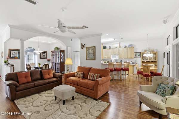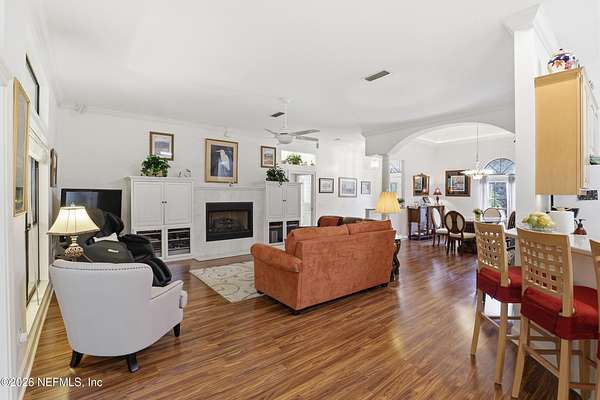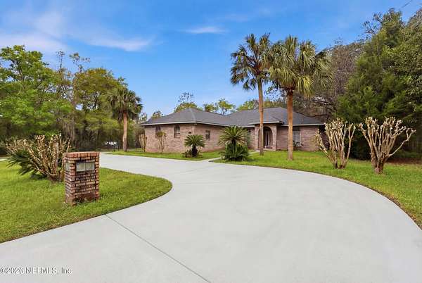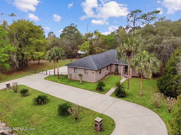 Custom built and well loved by one owner! Oversized corner lot with additional one acre included. Spacious kitchen with breakfast nook and eat at counter. Formal dining room adjoins the large living room. Near the kitchen/living areas are French doors to the large FL room which overlooks the private back yard. Deluxe primary suite has a door to the FL room, large walk in closet, two sinks, jetted tub and separate shower boasting beautiful Italian tile. The third bedroom also has a door leading to the FL room. Attached (side entry) and detached garages provide plenty of storage for vehicles and boats. There is a climate controlled/finished storage room above the attached garage. Updates include roof (2019), HVAC (2024) and water heater (2025). This brick beauty has a fenced yard with gates @ the circular driveway and detached garage. Located near Lake Brooklyn and just north of downtown Keystone Heights where you find the small town feel as well as shopping and local eateries!