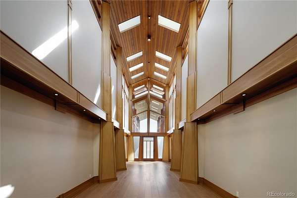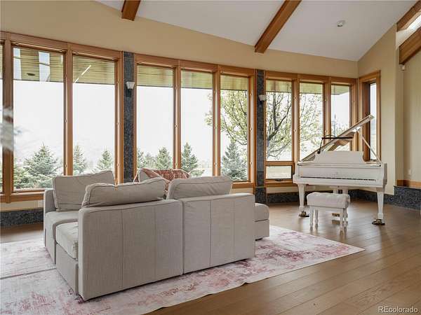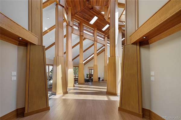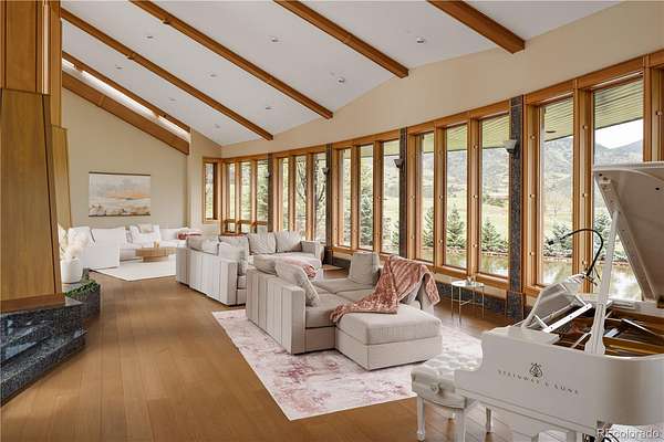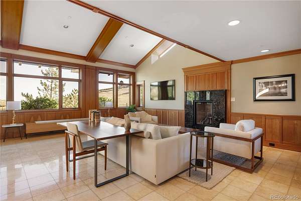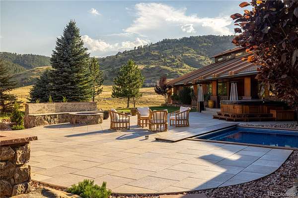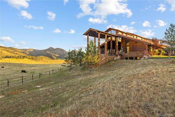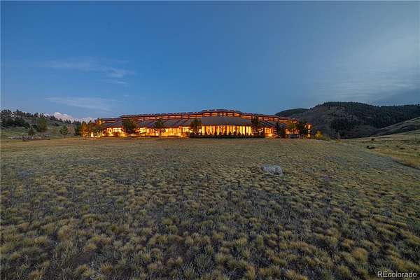 Set against the sweeping foothills of Golden, this architectural showpiece is a rare convergence of scale, craftsmanship, and setting. Designed to embrace Colorado’s dramatic landscape, the residence unfolds across 35 acres with panoramic views, extraordinary privacy, and effortless access to the region’s most coveted outdoor recreation. The striking exterior—defined by bold rooflines, natural stone, timber accents, and walls of glass—creates a commanding first impression. Inside, refined luxury meets organic elegance; rich cherry custom woodwork is met with floor to ceiling windows, capturing endless foothill vistas and golden sunsets. The layout is designed for both small gatherings and grand entertaining, with seamless transitions between formal and informal spaces. Natural materials, custom millwork, and curated finishes create a sophisticated yet welcoming atmosphere throughout. Every room has been thoughtfully positioned to maximize views, light and connection to the surrounding landscape. Expansive patios invite year-round enjoyment of each Colorado season. A truly exceptional feature of the estate is the 18-car garage, offering unparalleled space for collectors and automotive enthusiasts, or those seeking secure storage for recreational vehicles and specialty equipment. Whether showcasing a world-class collection or accommodating adventure-ready gear, this amenity elevates the property into a category of its own. Though privately set in a serene foothill enclave, the estate is just minutes from Golden’s renowned hiking and mountain biking trails, offering immediate access to some of Colorado’s most celebrated outdoor terrain. Downtown Golden’s charming shops and dining, as well as convenient routes to Denver and Boulder, are all within easy reach—delivering the perfect balance of seclusion and connectivity.