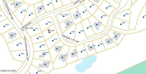 Turn onto Castlebrook Way SW from the main entrance (usually comes off Ocean Ridge Parkway). After about 0.3 miles, make a right onto Kirkwall Point SW. Continue for approximately 0.2 miles down Kirkwall Point SW-your destination, 6455, will be on the left. The property sits just past Castlebrook Way, near the end of the cul-de-sac.
