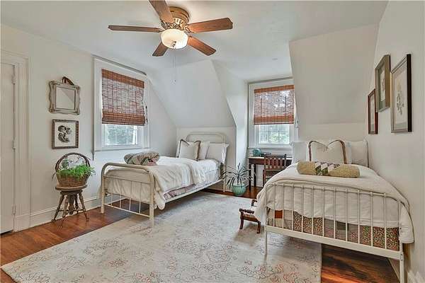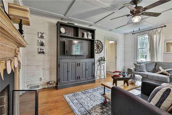 Discover timeless charm and modern comfort in this beautifully preserved 1937 bungalow, ideally situated on nearly six acres within the city limits of Fairburn. This exceptional home exudes character and craftsmanship, featuring a spacious living room, formal dining room, large kitchen, and a cozy screened porch perfect for relaxing. The main level offers a primary suite, a full bath, a half bath, an office/study, and a separate laundry room. Second Level offers two additional bedrooms and a full bath. Additional highlights include abundant closet space, a floored attic ideal for storage or future expansion, and a two-car garage with an attached workshop. A truly special bonus-the original architectural drawings by the home's designer will convey with the property. Set directly across from beautiful Duncan Park, this one-of-a-kind estate blends historic elegance with space, privacy, and convenience-an extraordinary opportunity in the heart of Fairburn.
