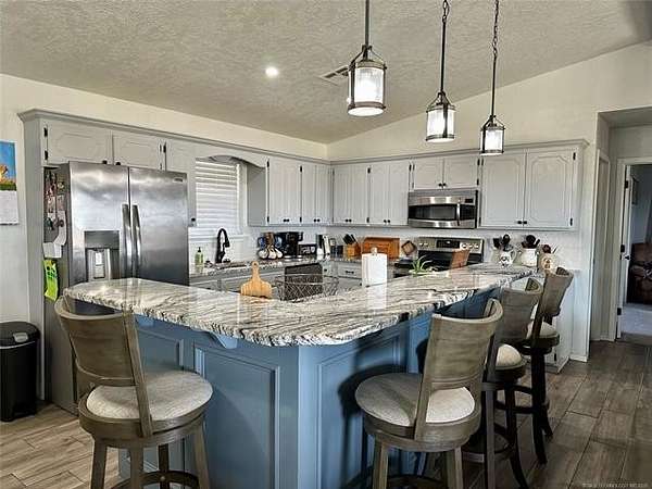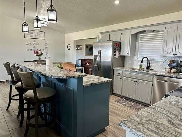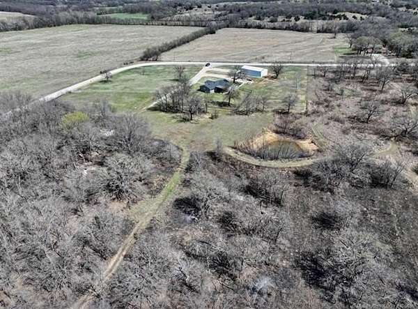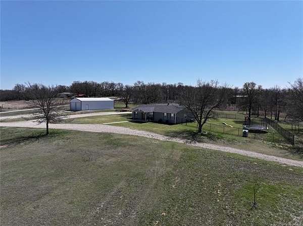 Enjoy the peace and privacy of country living on 46 beautiful acres with a pond and creek, perfect for hunting and fishing. This spacious home offers 4 bedrooms and 2 bathrooms with granite countertops throughout and all appliances included. Inside you'll find two comfortable living areas, giving plenty of room for relaxing or entertaining. Step outside to a covered front porch and a 12x20 pergola in the back, ideal for enjoying quiet evenings and wide-open views. The yard is enclosed with black chain link fencing for added convenience. The property also features a 30x50 metal shop building with electric, providing excellent space for equipment, hobbies, or storage, along with a storm cellar for peace of mind. The home has a 2-year-old hail-resistant roof, and the siding and guttering were replaced less than a year ago. With 46 acres, a pond, and abundant opportunities for outdoor recreation, this property offers the perfect blend of comfort, space, and rural lifestyle. Additional pictures coming soon!