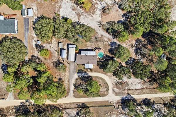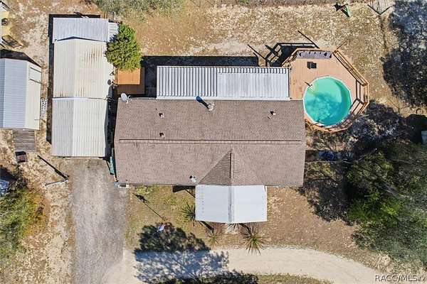 Welcome to peaceful country living! This beautifully remodeled manufactured home sits on 2.64 private acres down a quiet dirt road with no HOA and no restrictions - bring your animals, toys, and outdoor dreams. Offering 3 bedrooms, 2 bathrooms, and 1,620 square feet of living space, this home features an open floor plan perfect for entertaining, a functional mudroom, and updated finishes throughout. Enjoy your mornings on the large front deck and unwind in the screened back patio overlooking the above-ground pool with surrounding deck - ideal for relaxing or hosting. The property also includes a 20x40 carport/shop, two oversized utility sheds, and plenty of space for equipment, hobbies, or storage. Major updates provide peace of mind: - Roof replaced in 2015 - Windows replaced in 2018 - Appliances updated in 2022 - Well pump replaced in 2024 Conveniently located with the upcoming Suncoast Parkway extension offering an on-ramp just minutes away, providing easy access for commuting while still enjoying the privacy of country living. If you're looking for space, flexibility, and future accessibility without HOA restrictions, this property checks all the boxes. Schedule your showing today