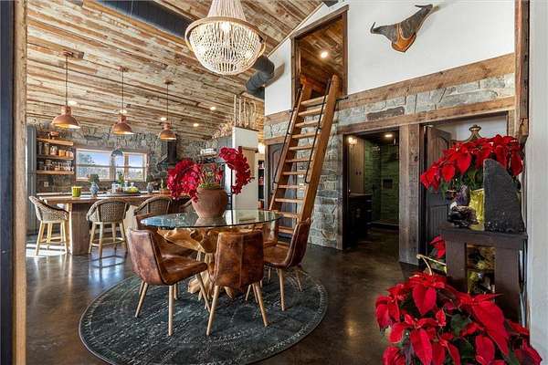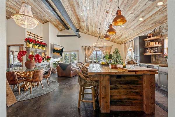This property is where luxury meets simple living. You will love the open floor plan and one-level living that this home has to offer with custom design elements throughout. The home features two bedrooms in the main living space, a loft with three built-in bunks, and a private suite with a separate entrance above the shop. Beautiful barnwood vaulted ceilings and natural elements create a warm and inviting living space. The character of the space is highlighted by a beautiful custom antique wet bar. The kitchen is complete with high-end appliances, custom cabinetry, and details that elevate the space. Each bedroom and bathroom have been designed with attention to detail and design. Attached to the home is a 40x64 heated shop ready to store your toys and host you, your family and friends for the next get together. The shop features two 14-foot doors, a 1/2 bath, and a large built-in bar. The grounds have been meticulously cared for and professionally landscaped creating your own little sanctuary. This lot is very private with a rural feeling just minutes from area amenities.