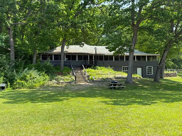 There are 11 outbuildings on the property totaling over 12,000 square feet that all have electricity including the small beach house located just off the lake that is currently being used for storage.