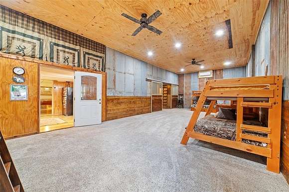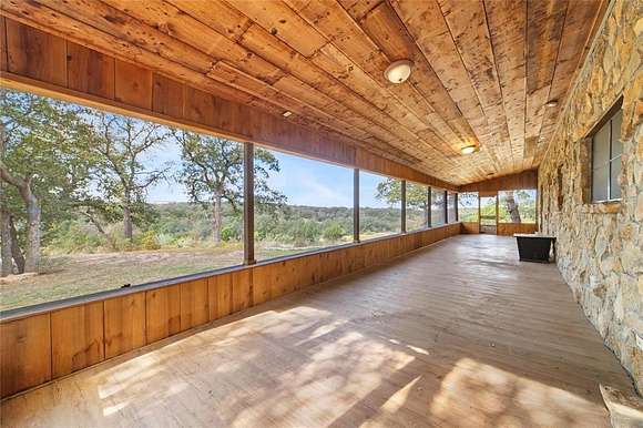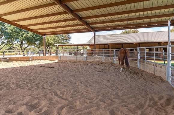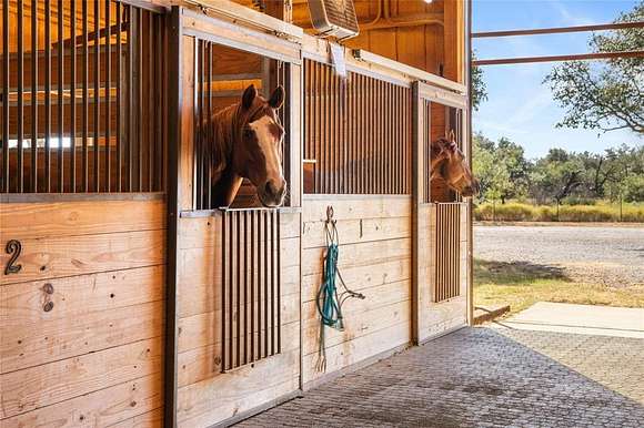 Immaculately maintained Working Horse Ranch nestled on 54.031 acres near Lake Brownwood. Beautiful Farmhouse constructed in 2004 sets at the end of a long driveway nestled among mature shade trees offering total privacy. The home boasts a 4-bedroom 4-bathroom with a 3-car carport offering a lifestyle of comfort and equestrian luxury. Open concept design with its vaulted ceilings enhances the ambiance with the primary bedroom downstairs and two bedrooms upstairs offering privacy. You will enjoy the back screened porch while watching the wildlife or sun set. The back patio offers amazing views and has a fire pit for those cool evenings or cooking out. Every working horse ranch worth its salt has a bunk house and this one is to be desired. Huge open room with kitchen and bathroom with plenty of storage can sleep several riders or guests. The equestrian minded person will appreciate the insulated heat controlled 10-stall horse barn with 12x12 padded floor stalls with attached covered runs six 15'x40' and four 15'x20' covered runs. Lighted 50' covered riding pen and lighted 100'x200' riding arena with 60'100' being covered with limestone footing designed by Kiser Arenas. 60' x 75' dirt riding arena with grass covered training area with trail obstacles. You will enjoy the 110' x 45' equipment barn that includes 50'x45' implement 30'x25' enclosed hay barn and 30'x25' insulated workshop with 220 electric amp. There are seven horse-fenced turnout pens with loafing sheds and three sections of cross-fenced pasture with a surface water tank. There is plenty of parking for horse trailers and equipment from the designated two parking areas. The property is located toward the end of the road with no thru access and gated entry with a cattle guard. This property is designed with the Horse lover in mind and is a fully operational horse ranch. This ranch has an abundance of wildlife perfect for the hunter. All measurements are approximate and must be verified by the buyer.
