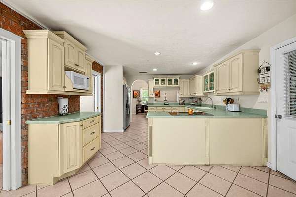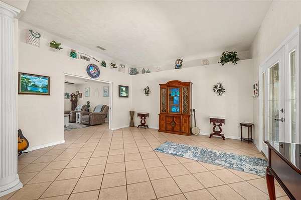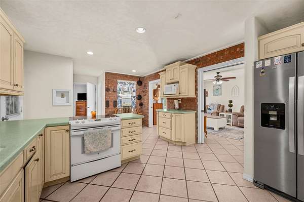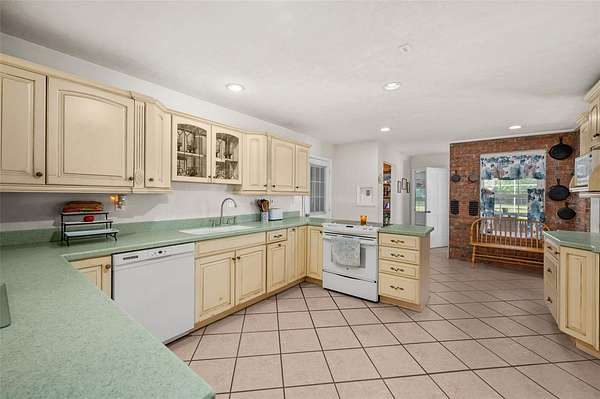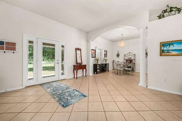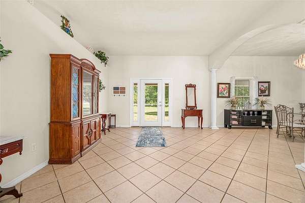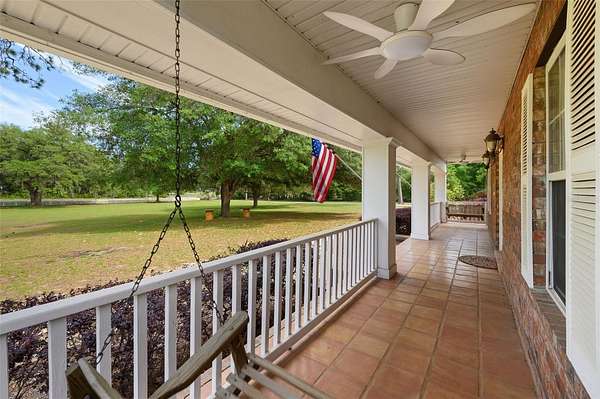 Tucked just over the Alachua County line in Newberry, this charming 3-bedroom, 3-bath, brick home sits on 5 beautiful acres, offering the perfect blend of comfort, space, and versatility. Inside, a well-designed layout features formal living and dining rooms, a cozy family room, and a spacious kitchen with additional dining space, separated by a distinctive brick accent wall.