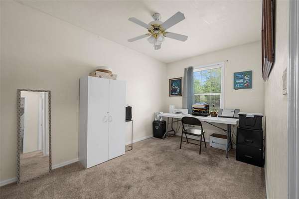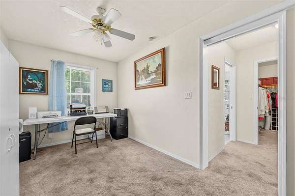 The split floor plan provides privacy for the primary suite, complete with a dedicated office, walk-in closet, and a generously sized bathroom. On the opposite side, two additional bedrooms and baths offer comfortable accommodations for family or guests.