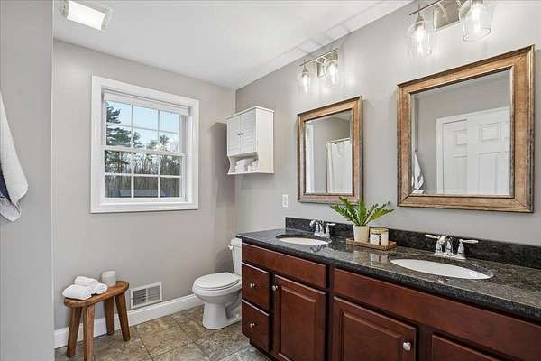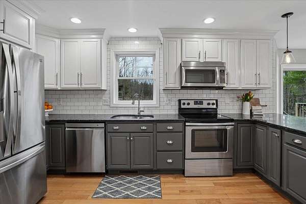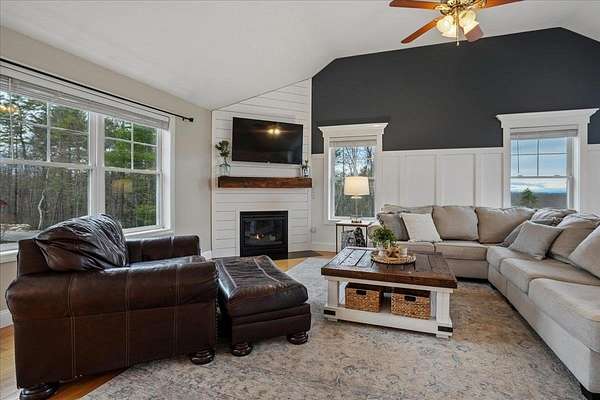 Set on 3 private acres, this exceptional property offers a rare blend of luxury, flexibility, and refined New England charm—crafted for the discerning buyer seeking both lifestyle and versatility. The main residence is a beautifully designed colonial featuring an open-concept living, dining, and kitchen area ideal for both everyday living and elevated entertaining. A dramatic cathedral family room fills the home with natural light, creating a warm yet sophisticated gathering space. The first floor also offers a versatile office or additional bedroom, complemented by a convenient three-quarter bath. Upstairs, the primary suite provides a private retreat with 2 spacious walk-in closets and private bath, while two additional bedrooms complete the second level. A finished lower level adds valuable bonus space—perfect for a media room, fitness area, or extended living needs. Just beyond, a stunning one-year-old detached farmhouse-style ADU offers exceptional opportunity. Thoughtfully designed with rustic character and modern finishes, it features a two-story living room, open-concept living, dining, and kitchen area, one bedroom, full bath and a striking second-floor post and beam loft. Ideal for multi-generational living, guest accommodations, or potential income. The property is further enhanced by a custom barn, offering endless possibilities for hobbyists, storage, or creative use. A truly unique offering where luxury meets lifestyle, privacy, and long-term value.