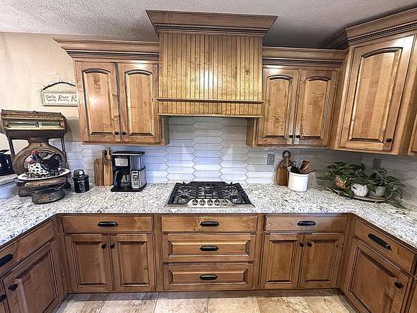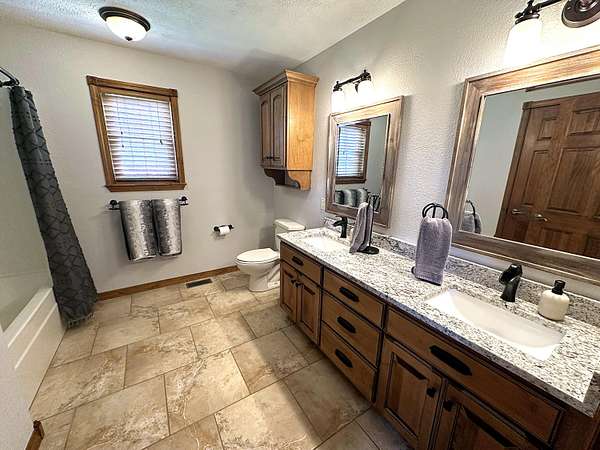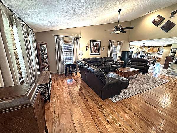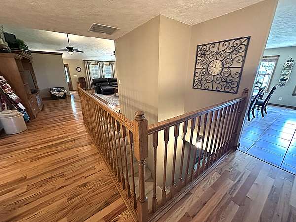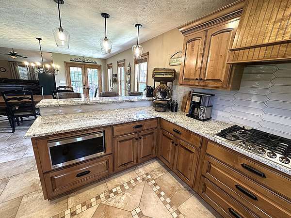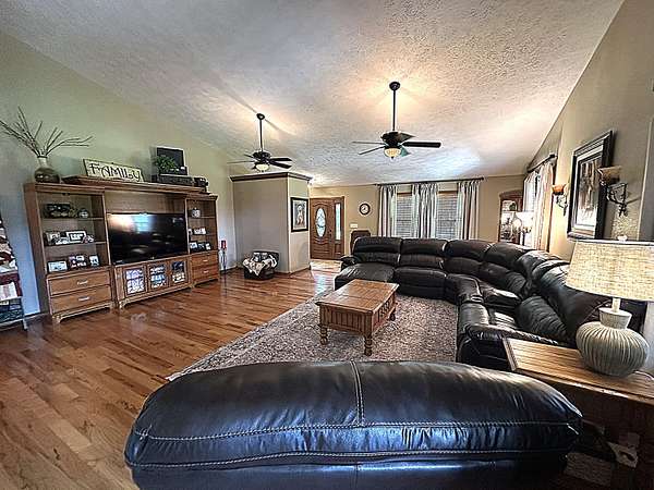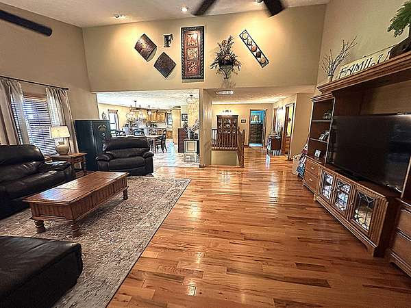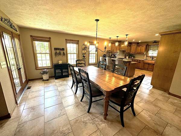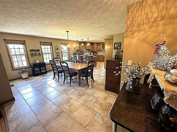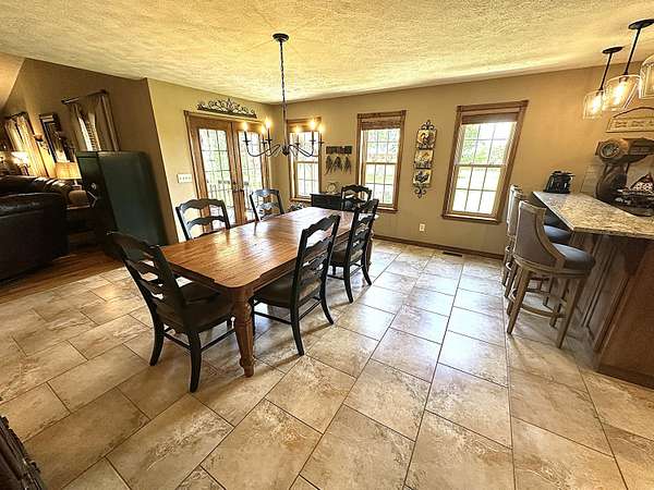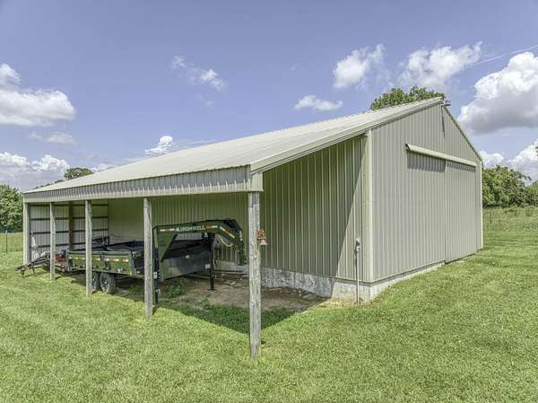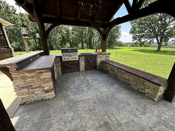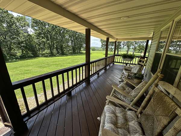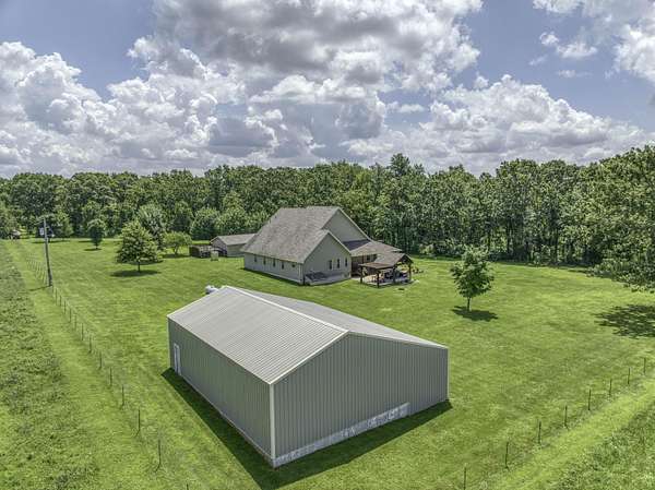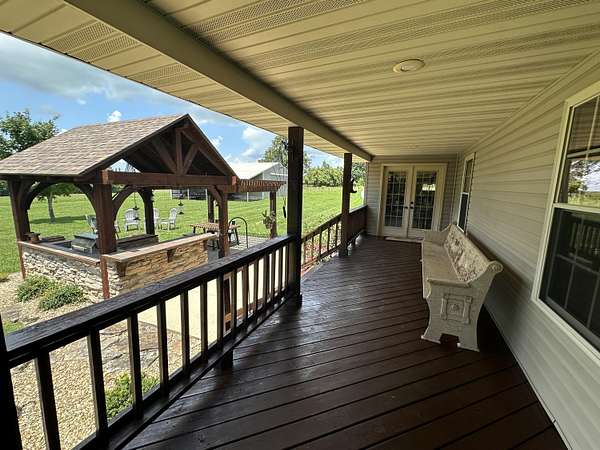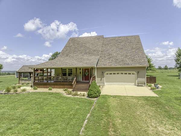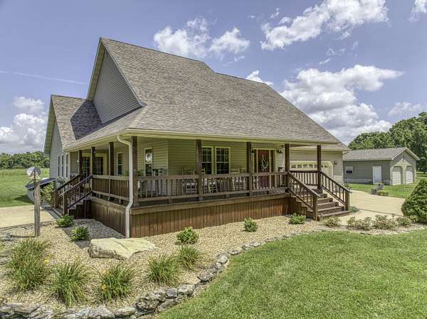 This Home is in Mountain Grove school district and sits .15 miles off Highway E on a county road surrounded by large-acreage tracts. Amazing pasture and rolling hill views plus wooded area that creates a private haven. There is a porch around two sides along with an outdoor kitchen and dining area. The front door opens into an open floor plan; a large living room with loads of windows, cathedral ceilings and wood floors, then the dining and kitchen with bar. The dining room has french doors that open onto the porch, which is adjacent to the outdoor kitchen area. The fully equipped kitchen has a pantry with pull outs, corner cabinet with pullouts, and stainless appliances. Granite counter tops are highlighted with the wood cabinets and tile backsplash. You pass the open staircase on your way to the roomy master bedroom. The master bath has double sinks with granite counter tops. The second bedroom on the main level is currently used as a sewing room and has a walk-in closet. The main level also hosts a second full bath and laundry room with built-in storage. The entrance to the 2-car garage shares a hallway with the laundry room. The basement level has a 3rd Bedroom (with bathroom and walk-in closet) and a recreation area and storage area. It has an exterior entrance adjacent to the outdoor kitchen area. Perfect for blended family living. The property has buildings to hold all of your toys or hobbies! The 30x40 shop has a 10-foot shedded off area on the 40 foot side. There is also a detached 2-car garage that is 24x30. The outdoor wood stove has propane backup if you don't want to use wood. The furnace heats the home and water. Such a beautiful setting for a house that feels like a home the minute you walk in! This home has so many windows that brings the outdoors in!