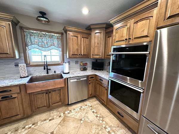 - Disposal, Double Propane Wall Oven, Exhaust Fan, Free-Standing Propane Oven, Ice Maker, Microwave, Propane Water Heater, Refrigerator