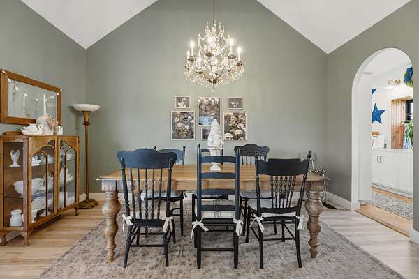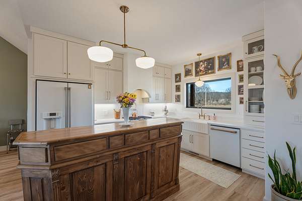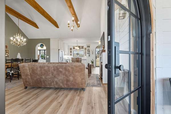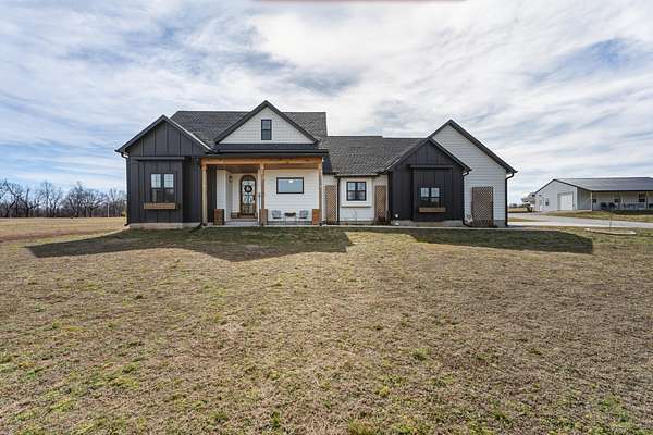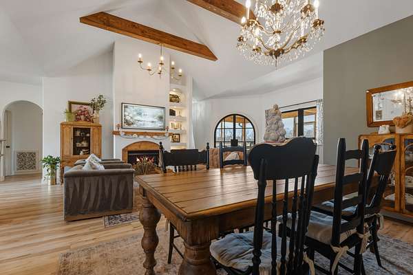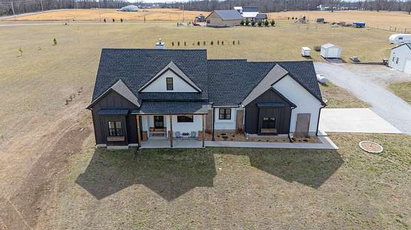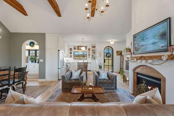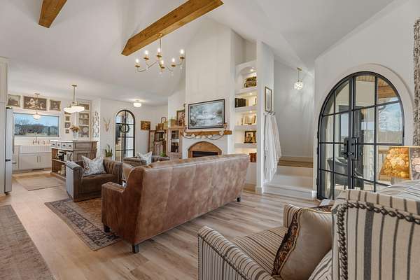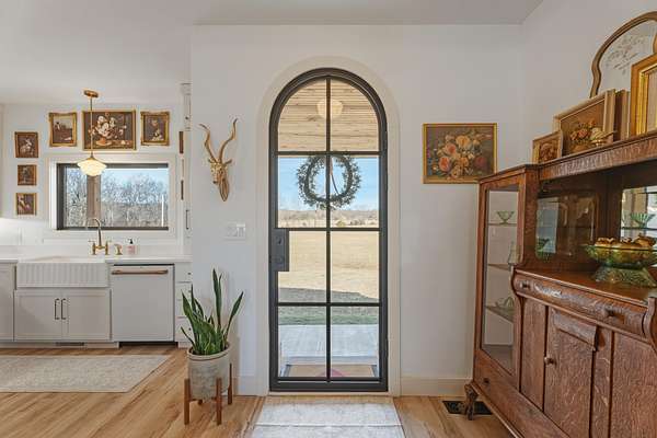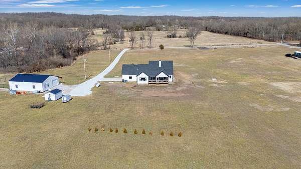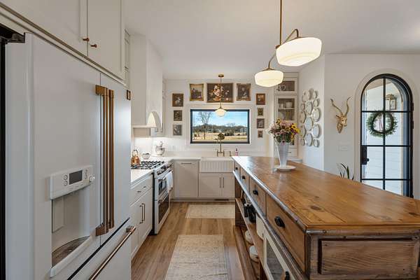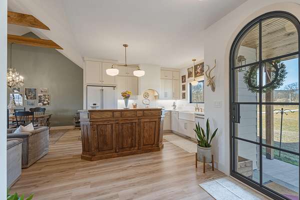 The Modern Heirloom Home, a beautifully crafted 4-bed, 3-bath custom home set on 5 peaceful acres just minutes from the lake. Designed with timeless character and high-end finishes, the home features arched architectural details, curated antique-inspired elements, and inviting living spaces perfect for everyday comfort and entertaining. The thoughtfully designed kitchen anchors the home, while spacious bedrooms and a dedicated office provide flexibility for modern living. Outside, enjoy quiet country surroundings, room for pets to roam, and a versatile 40x30 shop complete with full living quarters including kitchen, bathroom, and laundry-ideal for guests, extended family, or workspace needs. Experience laid-back country living with easy access to lake days, local dining, + nearby amenities