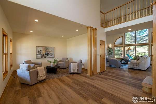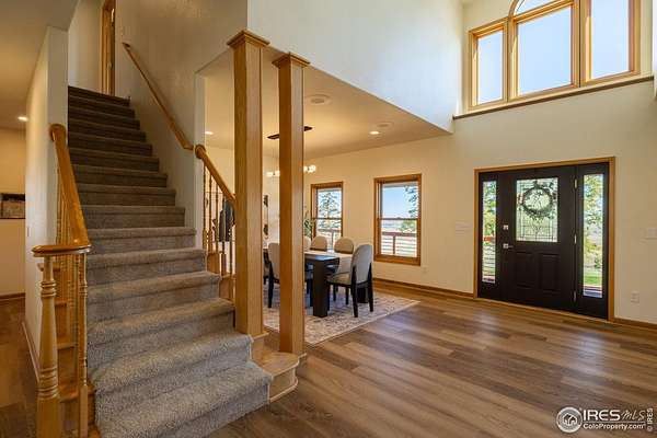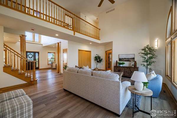 Rare Opportunity! Experience the best of both worlds-wide open space and inspiring views, yet just minutes from town. Set on 35 breathtaking acres, this property offers sparkling city light views at night, peaceful mountain and foothill scenery by day, and endless hiking and outdoor adventures right out your back door. The front acreage is ideal for animals, recreation, or simply extra room to spread out, creating a true sanctuary.This well-kept and recently updated two-story home blends comfort and elegance. Enjoy beautiful new flooring throughout, fresh interior and exterior paint, a gourmet eat-in kitchen, formal dining, and a dramatic two-story family room with soaring ceilings. The main-floor primary suite is a private retreat with its own porch-perfect for morning coffee or sunset views. Upstairs, spacious bedrooms offer plenty of room for family or guests.Car enthusiasts, hobbyists, or those seeking extra space will love the impressive 3,586 sq. ft. outbuilding/shop, which includes a 554 sq. ft. guest area complete with a kitchen, bedroom, and loft-ideal for visitors, a home office, or creative workspace. A brand-new detached 2-car garage plus an attached 2-car garage provide abundant storage for vehicles, equipment, and toys.Despite its private setting, you'll appreciate the convenient location-just minutes to CSU, Old Town, the Harmony corridor, and I-25. Whether you dream of country living, entertaining, or simply more room to live life fully, this property truly has it all.
