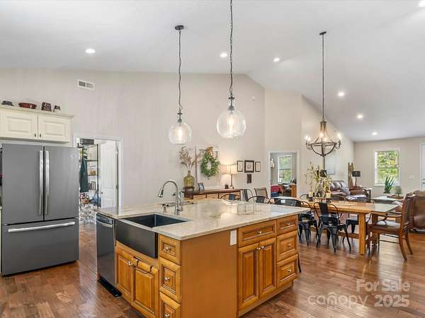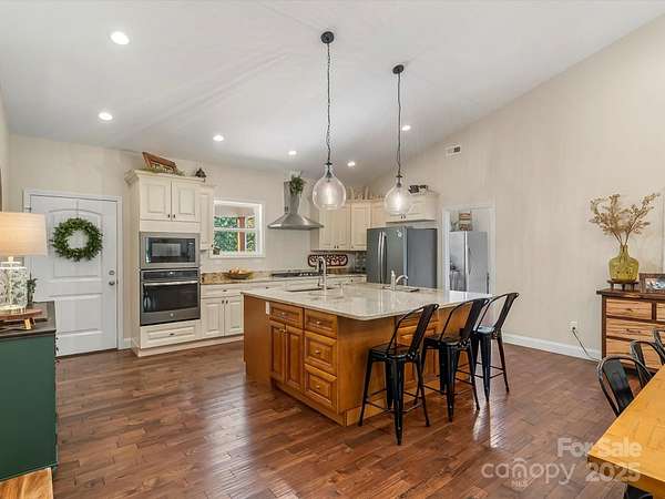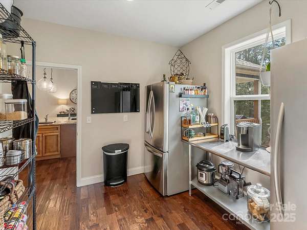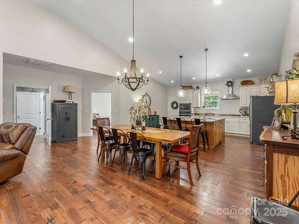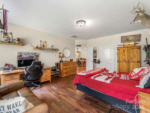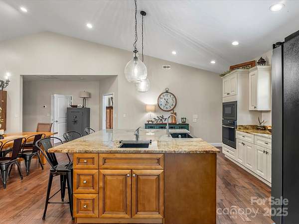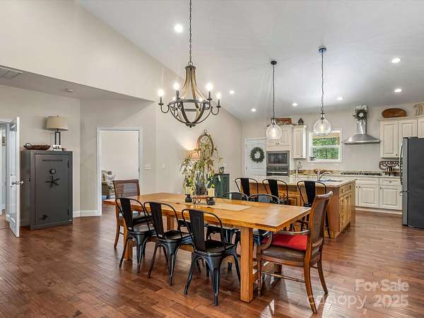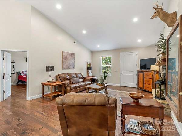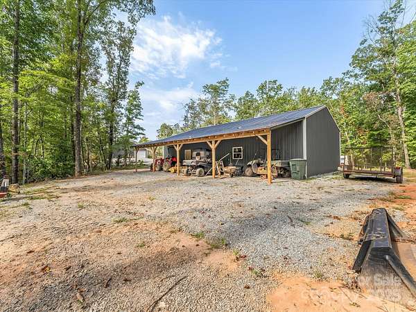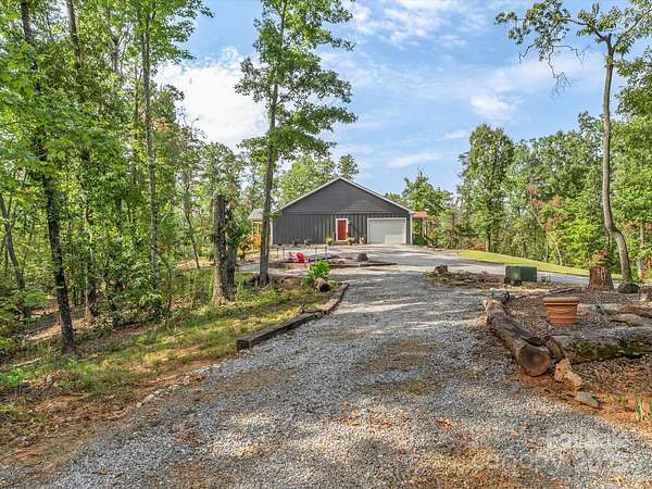 This well-built three-bedroom, two-and-a-half-bath home sits on 21.627 acres that adjoin over 13,519 acres of North Carolina Game Lands, South Mountain State Park, and US Forest Service land, offering unparalleled opportunities to hunt, hike, and camp on your own property or government lands; trail camera photos document monster bucks, bears, and turkeys, making this a paradise for nature lovers and outdoor enthusiasts. The home features an open living concept with high ceilings, two large suite bedrooms with full bathrooms and walk-in closets, and a smaller bedroom near the living room and kitchen; the living room showcases a gas log fireplace, and the kitchen boasts beautiful granite countertops with two sinks in the bar area and ample cabinet storage. Throughout the home are 4" hickory hardwood flooring (Summer Harvest Viking Grade) in rustic style, with ceramic tile in the bathrooms of the home. Outside, the property is secluded with numerous private retreats, including a fire pit and a back covered porch overlooking the mountains. A detached 2-bay garage (30' X 50') with 2 windows and a (14 X 50) lean-to that accommodates a regular bass boat and a large Pontoon, with additional space serving as a workshop and extra storage. There is also an additional on-site home currently used for storage-a three-bedroom, one-bath with a basement, its own well, and 1.15 deeded acres. The copper plumbing and some wiring were removed from this home years ago, when it was vacant. This property is a must-see for outdoor enthusiasts seeking expansive land, versatile living spaces, and abundant recreational potential.