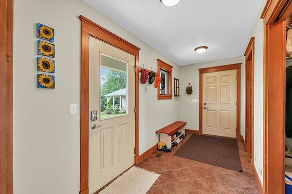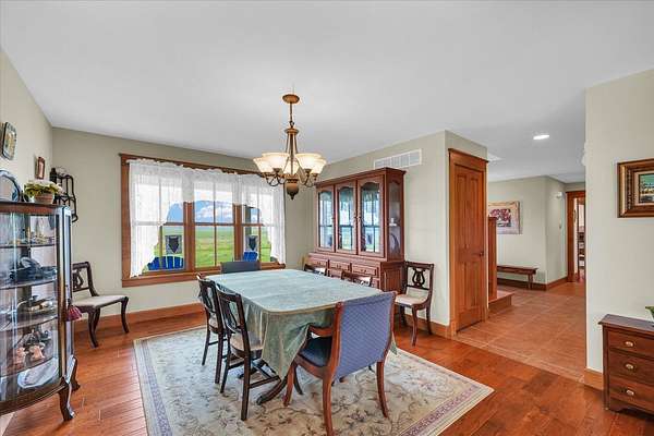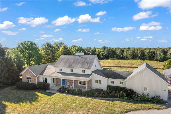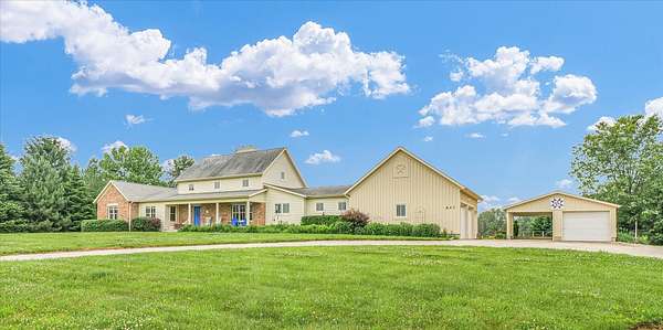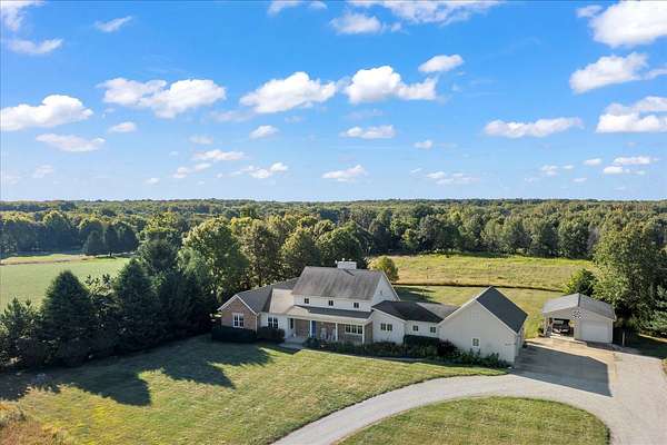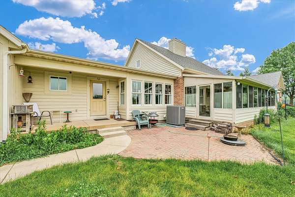 Discover the perfect blend of space, comfort, and natural beauty in this stunning 4-bedroom home set on 5 serene acres in the sought-after Monticello School District. Boasting over 3,000 square feet of finished living space, this home features vaulted ceilings and an open floor plan ideal for both relaxing and entertaining. The main level offers a formal dining room, a cozy living room with a fireplace, and an expansive sunroom filled with natural light from skylights and a wall of windows overlooking the picturesque backyard. Upstairs, enjoy additional living space with a spacious family room and a private office. The full unfinished basement offers endless potential with an egress window and a finished full bathroom already in place. Additional features include an additional detached garage with carport, natural gas, fiber internet, whole house vacuum system, and only half mile away from the North entrance to Allerton Park.
