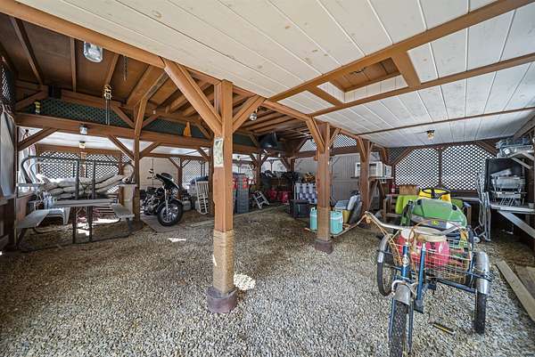 Set on just over 5 private acres with its own pond, stream, and walking trails, this one of a kind property offers far more than just a home. The main residence is a well maintained split level featuring hardwood and tile flooring, an updated kitchen with granite countertops and stainless appliances, a sun filled rear sunroom, and a finished lower level with a large family room and fireplace. What truly sets this property apart is the collection of four additional buildings, all powered and built with durable metal roofs. A stunning post and beam pavilion creates the perfect setting for entertaining, complete with a second floor game room and covered grilling area. A two story workshop offers flexible space with a finished upper level ideal for guests, hobbies, or extended use. There is also a large two story storage building for equipment and seasonal needs, along with a charming bunkhouse designed for a true glamping experience. The grounds are equally impressive, featuring mature landscaping, garden space, and established blueberry bushes. The pond and stream attract a wide variety of wildlife including deer, ducks, and more, creating a peaceful setting that feels like your own private retreat. A long paved driveway leads to ample parking and a layout that offers both privacy and usability. A rare opportunity for buyers seeking space, versatility, and a property that can serve as a home, retreat, or gathering place. Open house Saturday 1 to 3 and Sunday 11 to 1.