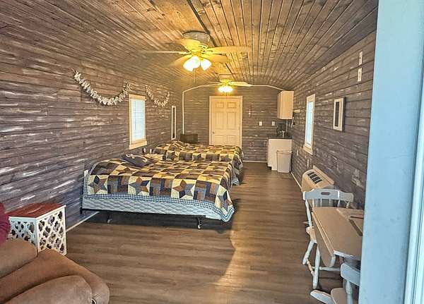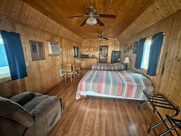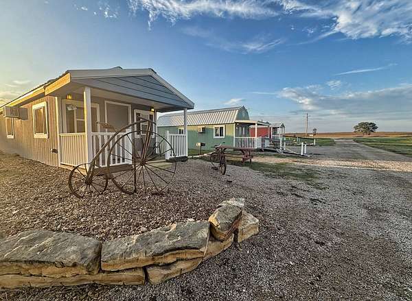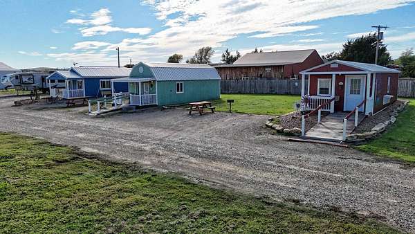 Turn-key lodging business located minutes from Kansas' best and clearest lake, Wilson Reservoir! - This unique income property is comprised of 3 cabins plus additional RV hookups. The property caters to hunters and lake goers for the area. | Cabin 1: 384 sq ft (2011) - Cabin 2: 432 sq ft (2012) - Cabin 3: 432 sq ft (2016) - RV Services: (3) 50 amp service RV sites, (7) 30 amp service RV sites, (3) sewer clean out sites, (3) water hook-up sites | Property Acreage: 3.1 +/- usable acres / 3.296 surveyed acres | Each of the cabins units includes: mini-fridge, coffee maker, (2) queen beds, heated / cooled, table & chairs, recliner, and front porch with sitting chairs for enjoying those Kansas sunrises! The cabins are currently listed for overnight and extended stays on: AirBnB, Hipcamp and on the Set-In-Stone Cabin website plus the Cabin Facebook page.