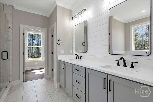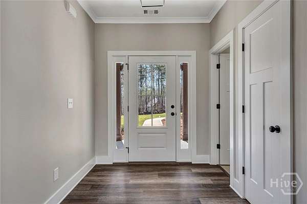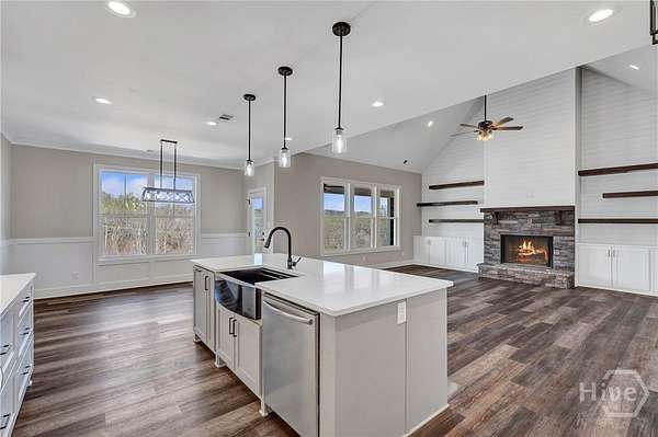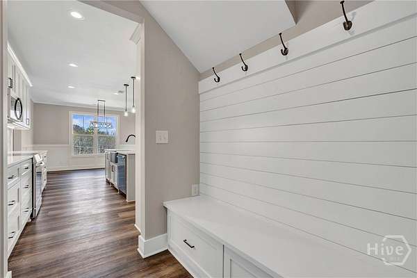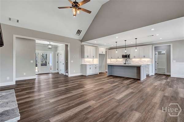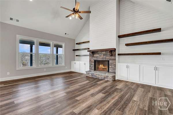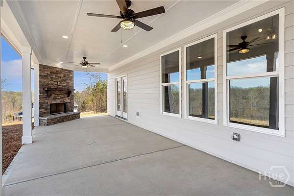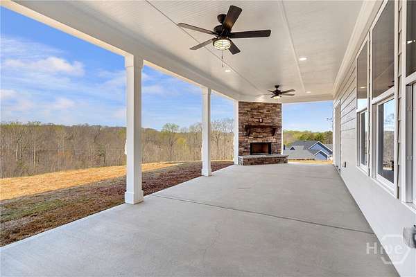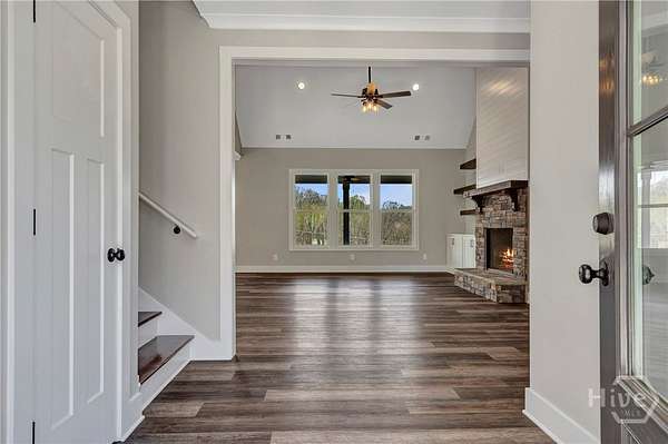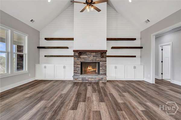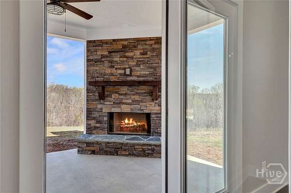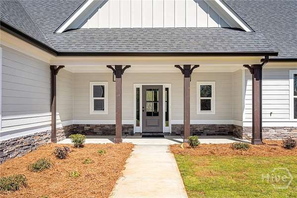 Situated on 2.42 acres of A-2 zoned property-perfect for bringing your horse-this stunning Craftsman-style home offers the ideal blend of space, comfort, and high-end finishes. A large, level front lawn welcomes you to the covered rocking chair front porch, while the side-entry 34' x 22' three-bay garage features insulated doors and a spacious side drive. The private backyard is designed for relaxing and entertaining, complete with a 12' x 32' covered porch with fireplace and a separate open grilling patio. Exterior highlights include beautiful stone accents, architectural shingles, seamless 6-inch gutters, and a high-capacity well producing 40 gallons per minute for abundant water supply. Inside, the home showcases a bright foyer entry leading to an expansive open kitchen with a large island, farmhouse sink, quartz countertops, tile backsplash, abundant cabinet and drawer storage, upgraded appliances, and a generous walk-in pantry. The mudroom adds convenience, while the spacious family room features a striking stone fireplace, custom built-ins with floating shelves, and shiplap trim. The primary suite offers private access to the rear porch, a tray ceiling, a spa-like bath with soaking tub, large tiled shower with seamless glass door, and a custom walk-in closet connected to a pass-through laundry room for ultimate functionality. Additional features include tile baths, LVP flooring on the main level, upgraded carpet with 8 lb pad upstairs, a large bonus room with extra storage, dual HVAC systems, double water heaters, custom trim throughout, ceiling fans in all bedrooms, bonus room and porches, stubbed gas log starter, and thoughtfully designed custom closets-making this exceptional property as practical as it is beautiful.