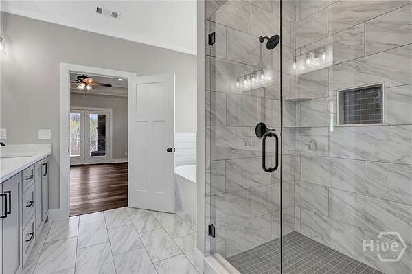 - Breakfast Area, Built-In Features, Double Vanity, Entrance Foyer, Garden Tub/Roman Tub, High Ceilings, Kitchen Island, Main Level Primary, Recessed Lighting, Separate Shower, Tray Ceiling(s), Vaulted Ceiling(s)