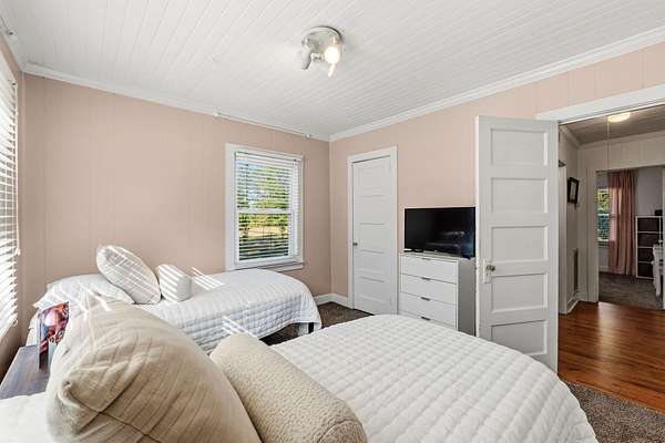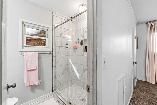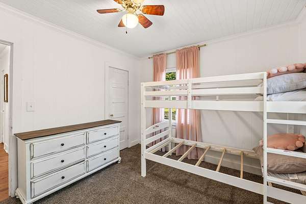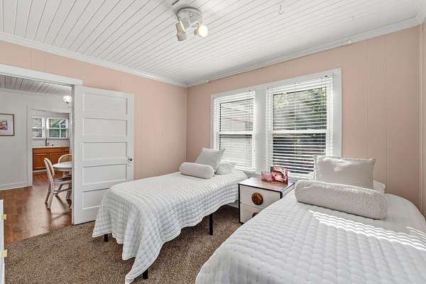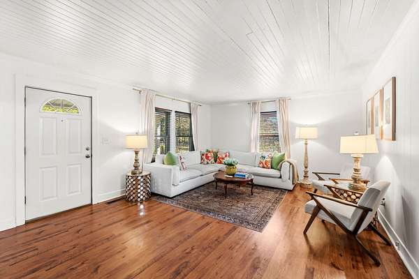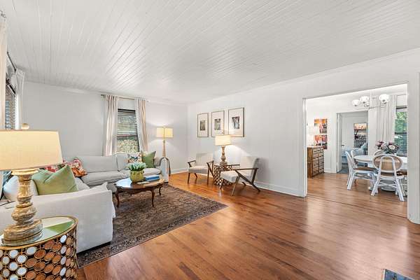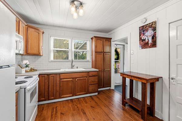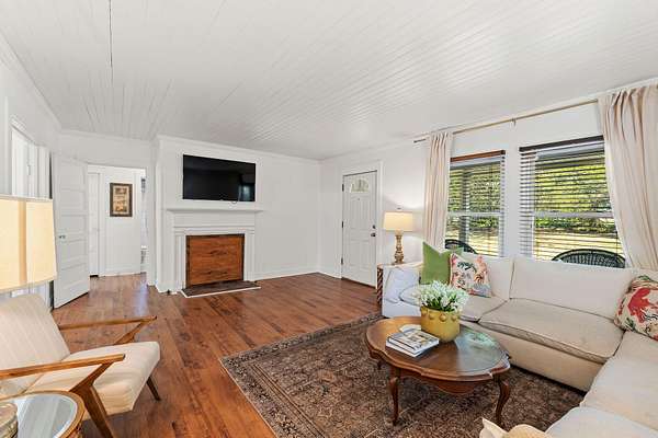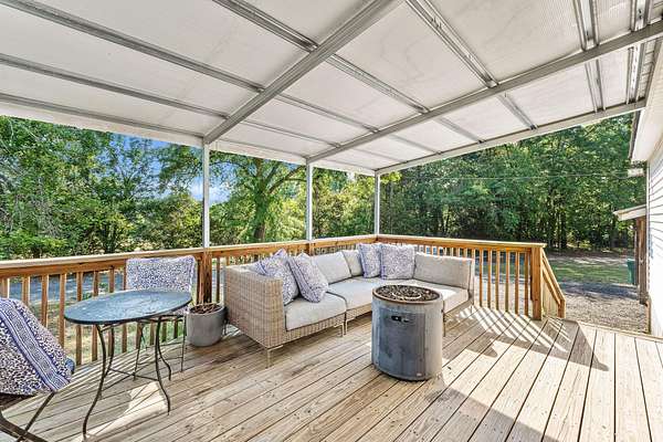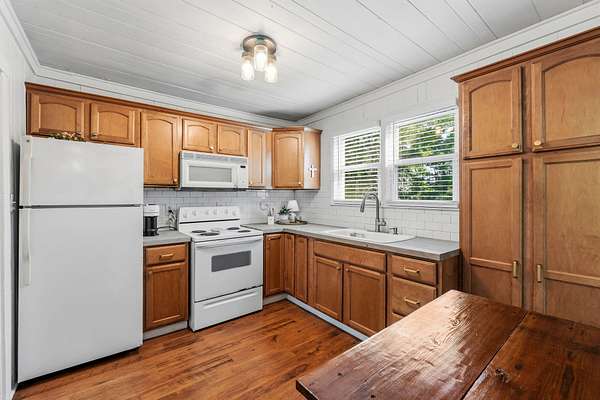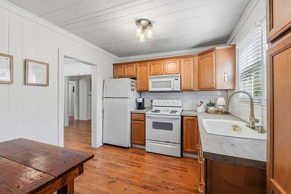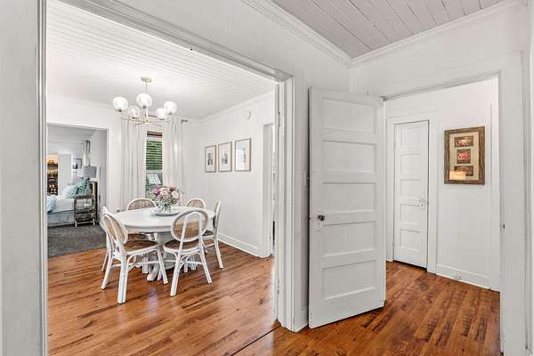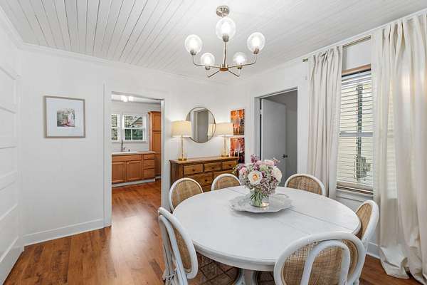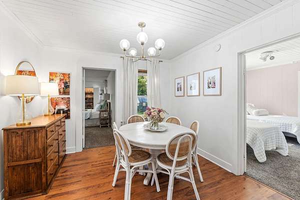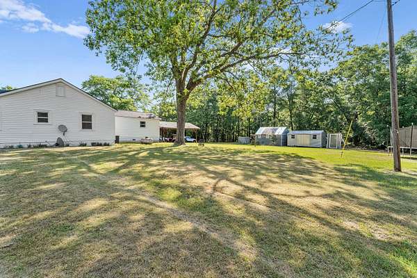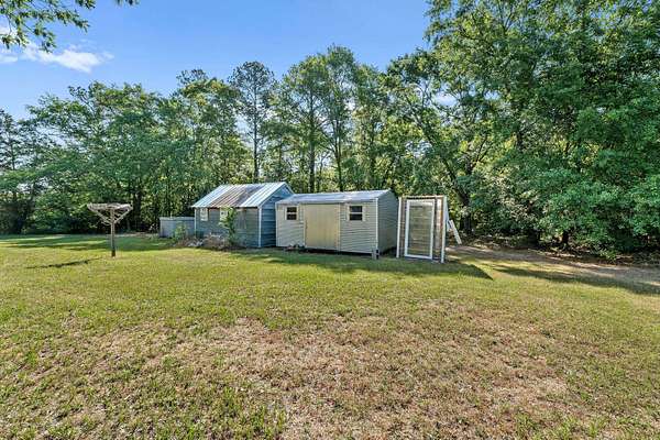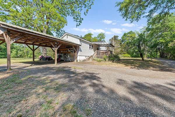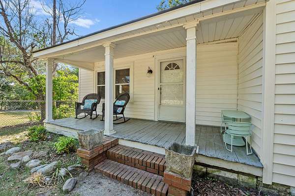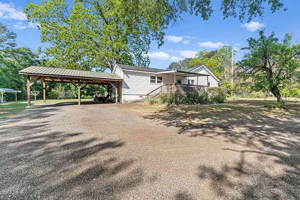 Step into timeless charm where simplicity and elegance define this three-bedroom, two-bath antique farmhouse filled with the character dreams are made of. This 1,363-square-foot home proudly preserves its original details, showcased beautifully in the crystal door knobs and classic finishes throughout. The quaint kitchen blends simplicity and elegance with renovated cabinetry and warm wood countertops, offering modern function while honoring the home's heritage. The dining room is filled with simplicity and elegance, highlighted by a gold chandelier and parlor-style doors that create an inviting space for gatherings and everyday living alike. The spacious primary suite offers a peaceful retreat from the outside world, continuing the home's refined yet comfortable feel. The primary bathroom features stunning white tile floors and a beautifully tiled shower, adding a clean, classic touch. Two additional bedrooms provide comfortable space for family, guests, or a home office. The second full bathroom showcases painted plank wood walls, adding charm and character while maintaining timeless simplicity. Outdoor living is enhanced by a covered side deck that provides the perfect extension of the home's simple elegance, with room for both a cozy seating area and a quaint spot to enjoy your morning coffee. A covered carport offers convenient parking and space to store much-needed outdoor equipment. Completing the property are two spacious storage sheds, providing ample room for tools, hobbies, or seasonal storage.