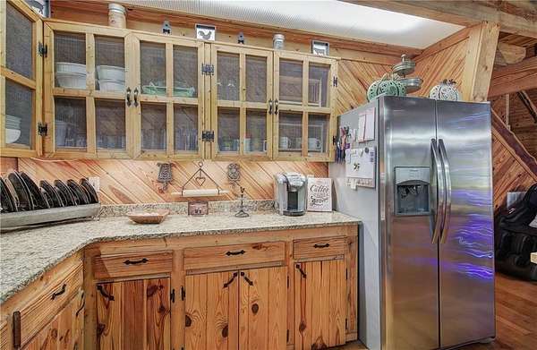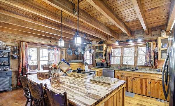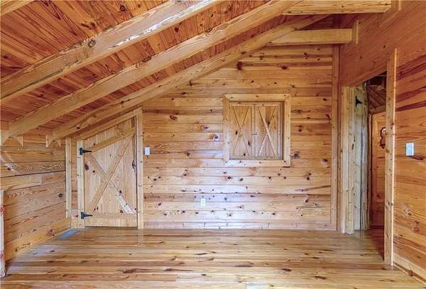 BEAUTIFUL CUSTOM HOME ON 5 PRIVATE ACRES !!! If you are seeking a RURAL relaxed LIFESTYLE that includes a QUALITY build on 5 PRIVATE acres, surrounded by woods, adjoining nearby horse farms/farms, with only sounds of roosters and the gently flowing stream over the hill, this LOVELY HOMESTEAD is it! IDEAL for WORK FROM HOME (1G HIGH SPEED fiber) FAMILY COMPOUND, RETIREMENT and HOME BUSINESS/WORKSHOP. No HOA's, community fees or restrictions!! Enter through the gated farm entrance, with views of the GORGEOUS pond and beautiful fenced pastures, as you drive down the long level driveway and experience some of the most amazing sunsets you'll ever see! The gorgeous custom home features wrap around porches, charming details, and is the perfect blend of rustic with modern amenities. This 5 ACRE wooded property has VERY LITTLE MOWING and features a HUGE detached WORKSHOP/GARAGE (constructed in an underground barn) with 200AMP,upgraded transformer 37.5KA, concrete flooring, additional concrete drive/parking, super-functional for AUTO MECHANICS, welders, small business owners, BOAT storage, parking 8-10 vehicles, truck parking, storage and more. The custom log home has been lovingly updated to include beautiful granite, fabulous soaking tub in primary bath, lots of closet space, soaring ceilings and an open floorplan. Easy living with PRIMARY BEDROOM SUITE ON MAIN LEVEL, his/hers closets, beautiful bath and kitchen. Second story features a loft, two additional bedrooms, full bath and lots of closet space. An EASY COMMUTE to Canton (45 min), Marietta (45 min), Ellijay (30 min) Chattanooga (45 min), only 10-12 MINUTES TO HOSPITAL, GROCERY, RESTAURANTS and i-75 in CALHOUN GA! Nearby Carters Lake (10-15 min) for boating/fishing. LOCATED IN A FARM CORRIDOR, surrounded by family farms and horse farms, THIS IS THE BEST OF ALL WORLDS, peaceful rural privacy with quick access to all conveniences. Come and experience the beauty and "every day feels like a vacation" living experience at 647 Knight Bottom Rd. ( Fairmount mailing address but closer-in to Calhoun GA).