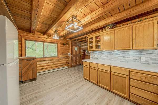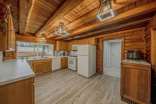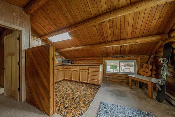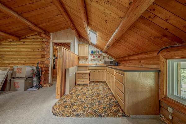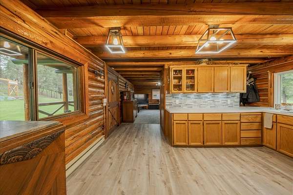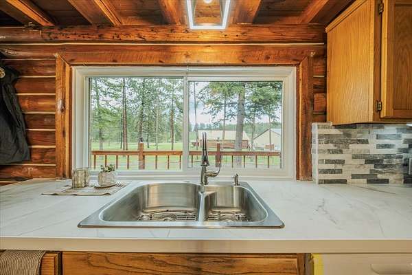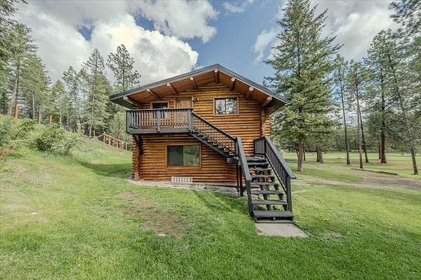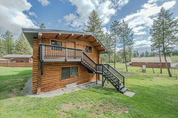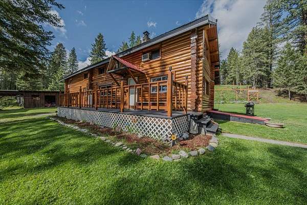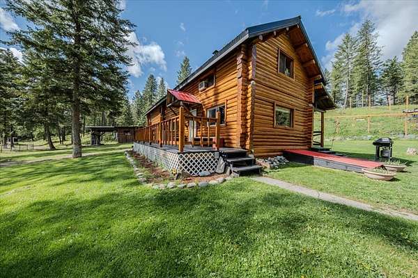 Nestled in the rolling hills of the Tobacco Valley, framed by towering rock outcroppings and sweeping mountain views, this handcrafted log home on 16 acres truly embodies the Montana dream. Painstakingly sanded, chinked and finished, the logs feature a rich, durable finish polished to perfection. Hand-carved details throughout reflect exceptional pride of ownership and lend an artistic quality rarely found. Inside, rustic charm meets modern comfort with a fully renovated kitchen and bathroom, complemented by new flooring throughout. The flexible floor plan offers three bedrooms and the potential for a separate lock-off living quarters with a private entrance-perfect for guests, rental income or multigenerational living. Step outside to enjoy a large fenced garden, covered wood storage, manicured lawns and expansive Montana skies. Apple and plum trees, rhubarb and other established perennials enhance the property's homesteading appeal. Existing ATV trails and a private shooting range make this an ideal retreat for outdoor enthusiasts. With no CCRs, the property offers full freedom of use and development. Previously planned for further subdivision, the roads are already in place, presenting an excellent opportunity for expansion or investment. Spacious, easily accessible and surrounded by breathtaking views, this exceptional property offers endless opportunities to grow, explore and fully embrace the Montana lifestyle.